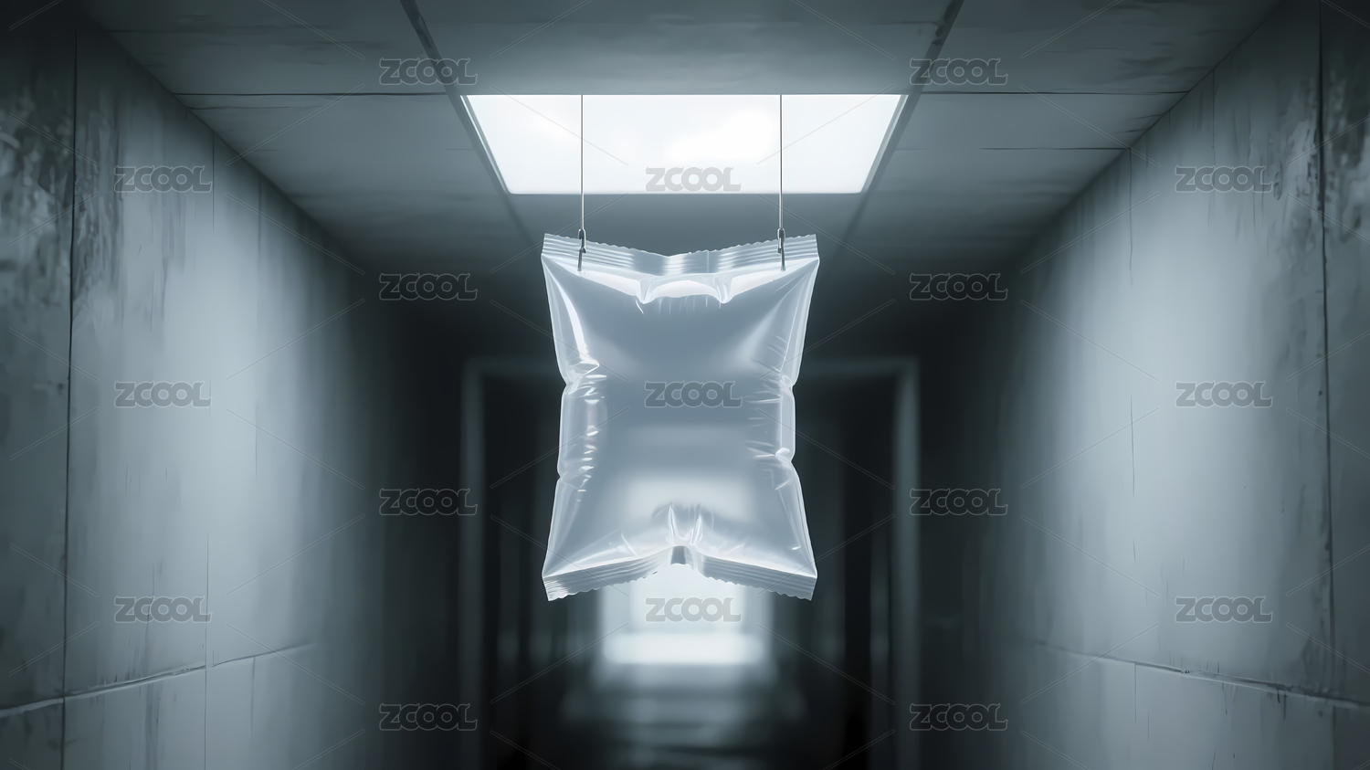神秘走廊中的白色充气袋