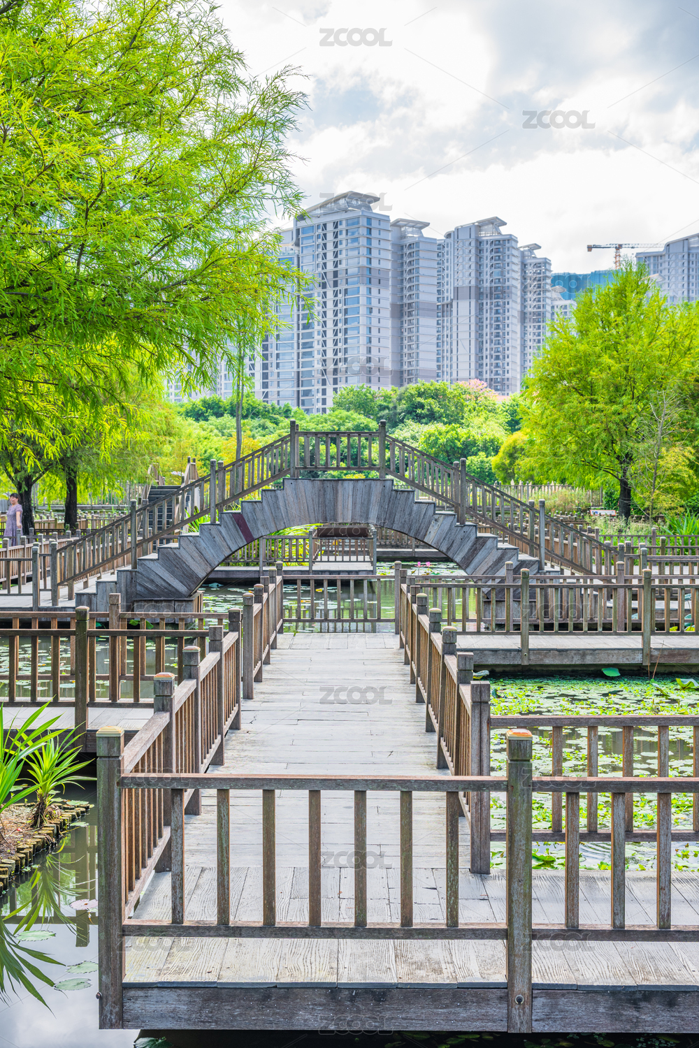 深圳现代建筑和木质栈道