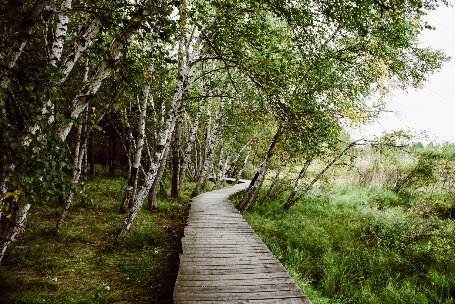 草地上的木质栈道