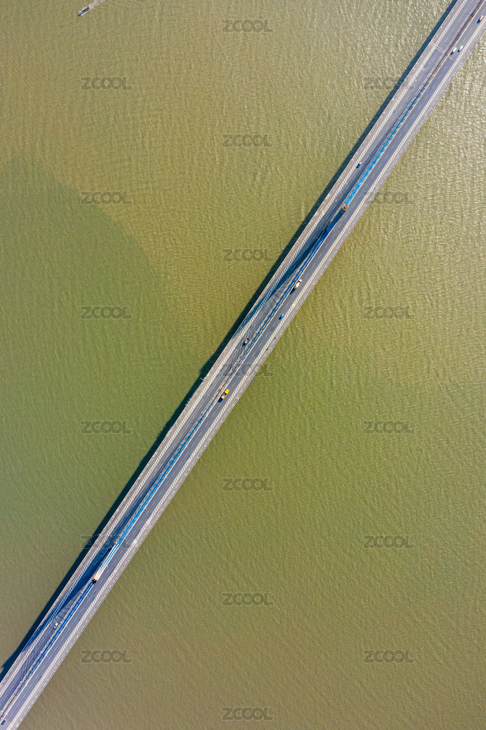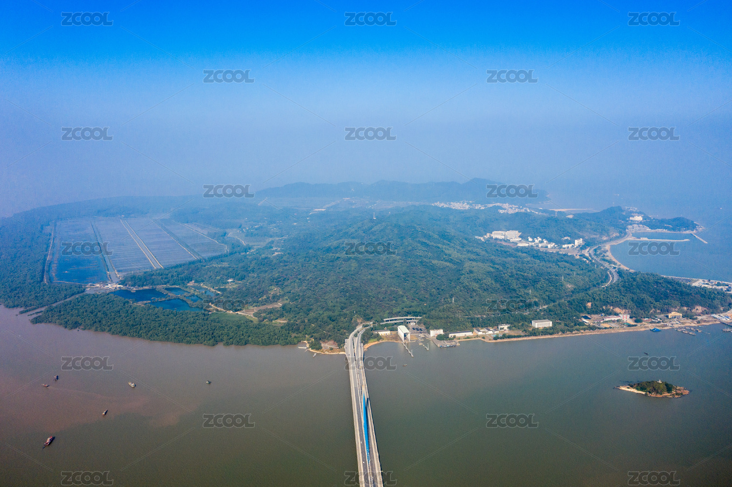 航拍中国广东珠海淇澳岛淇澳大桥风光