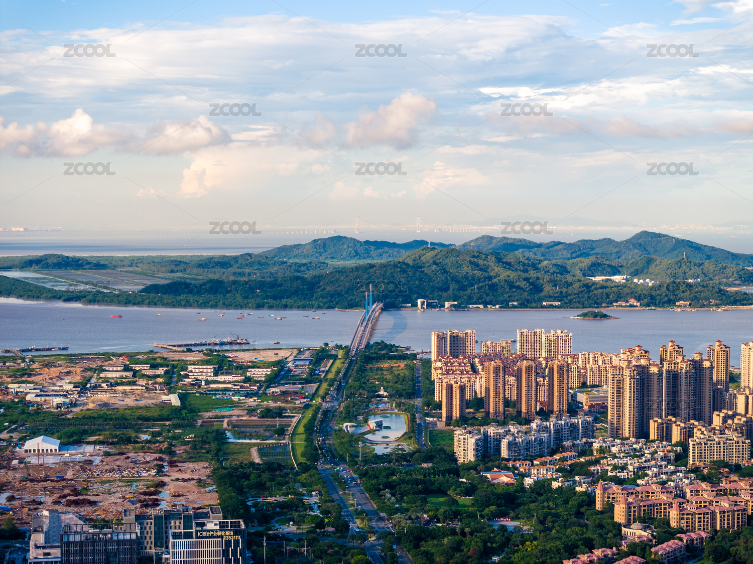 广东珠海高新区唐家后环与淇澳大桥航拍