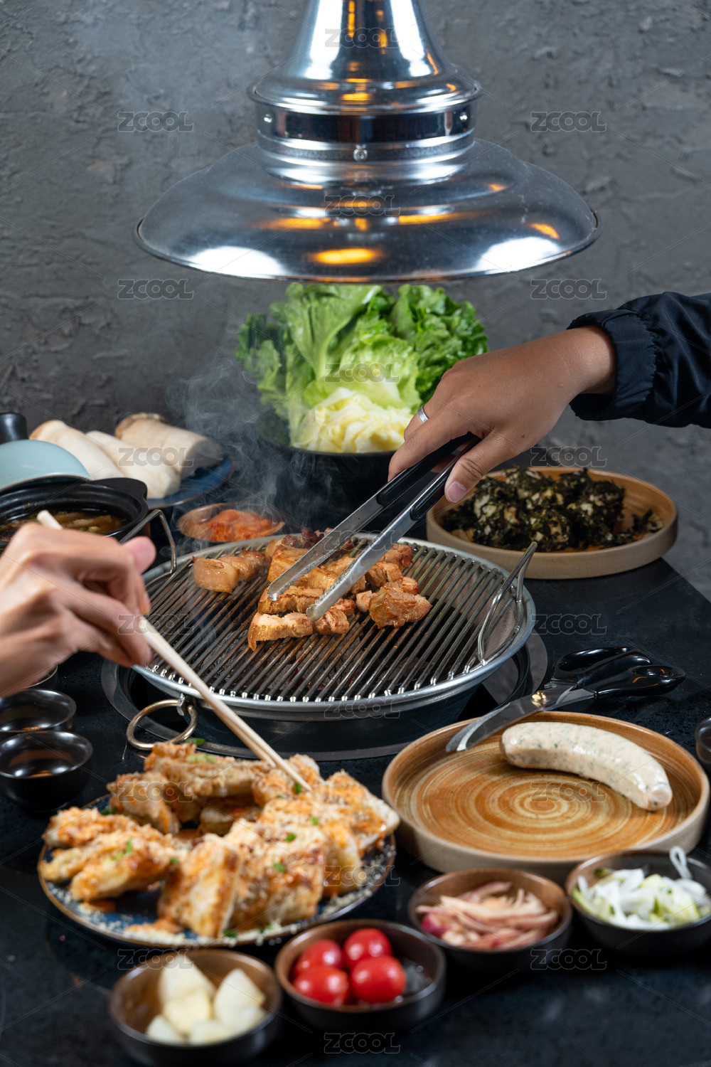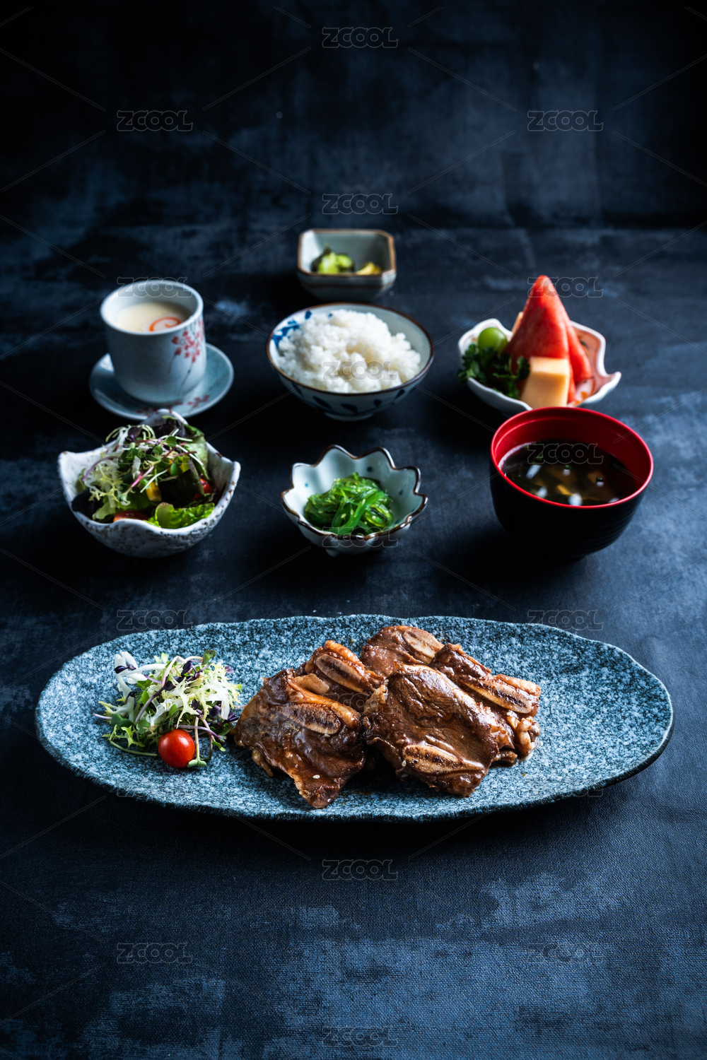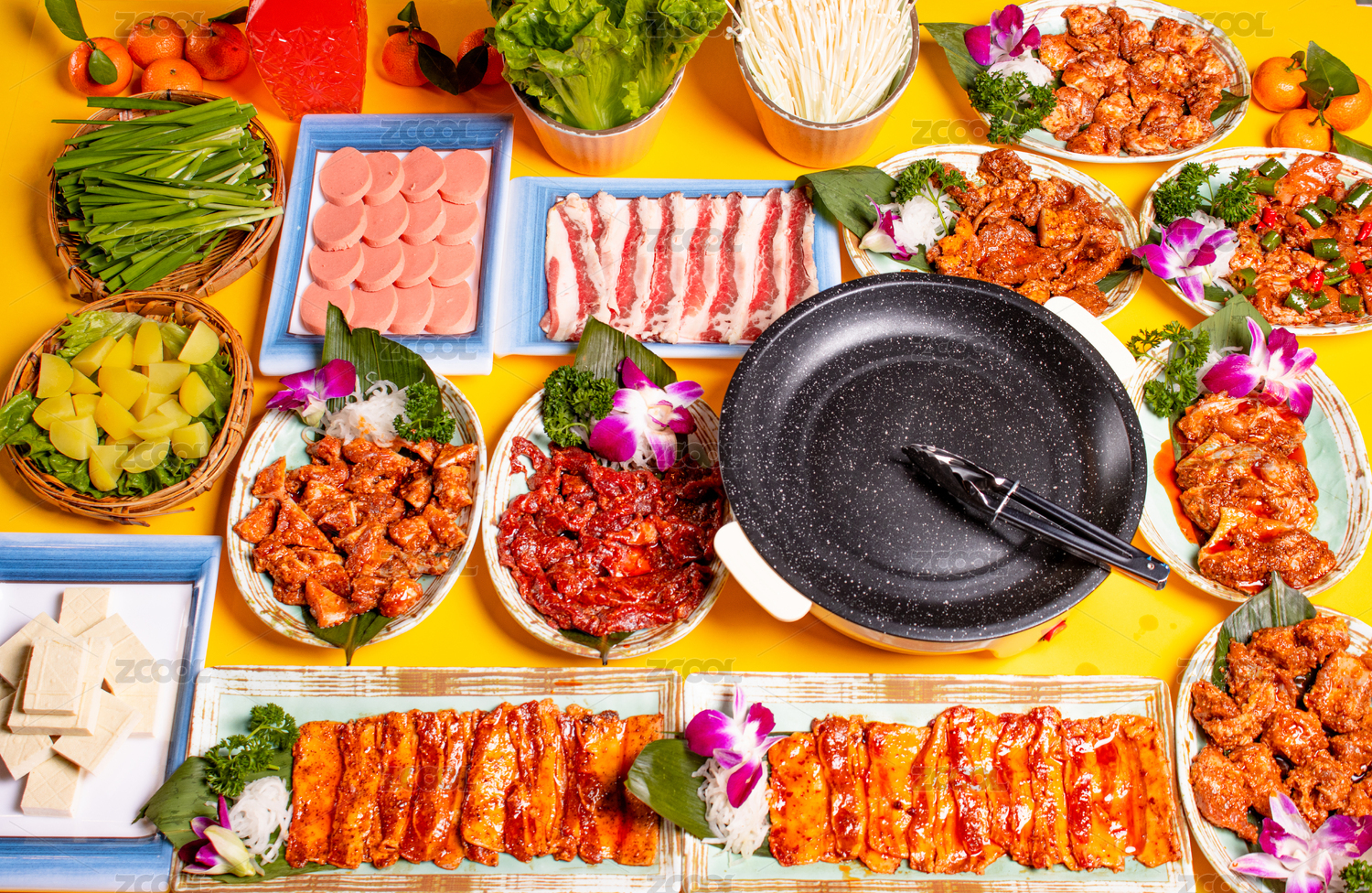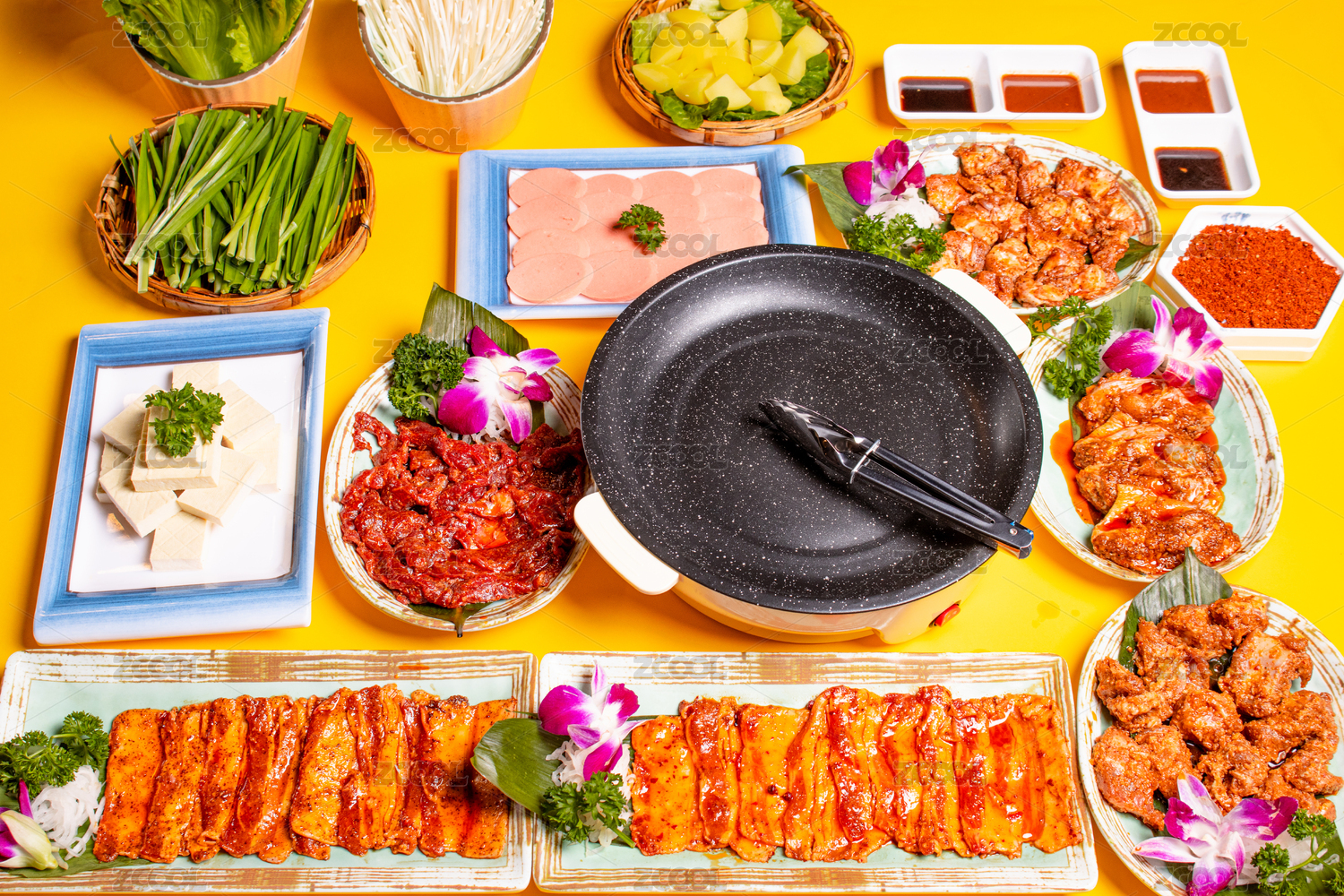 一盘有香菇牛肋条牛舌牛小粒的烤肉套餐