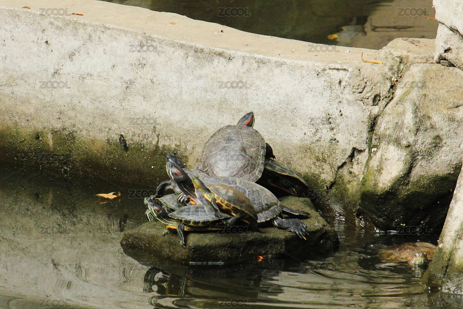 泉州承天禅寺放生池红耳龟