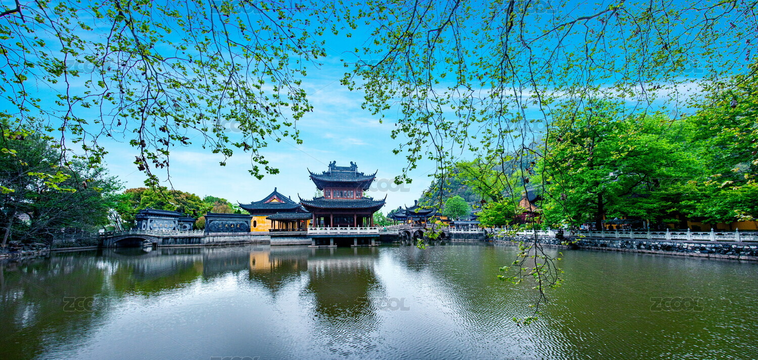 中国江苏省苏州市木渎镇灵岩山放生池建筑