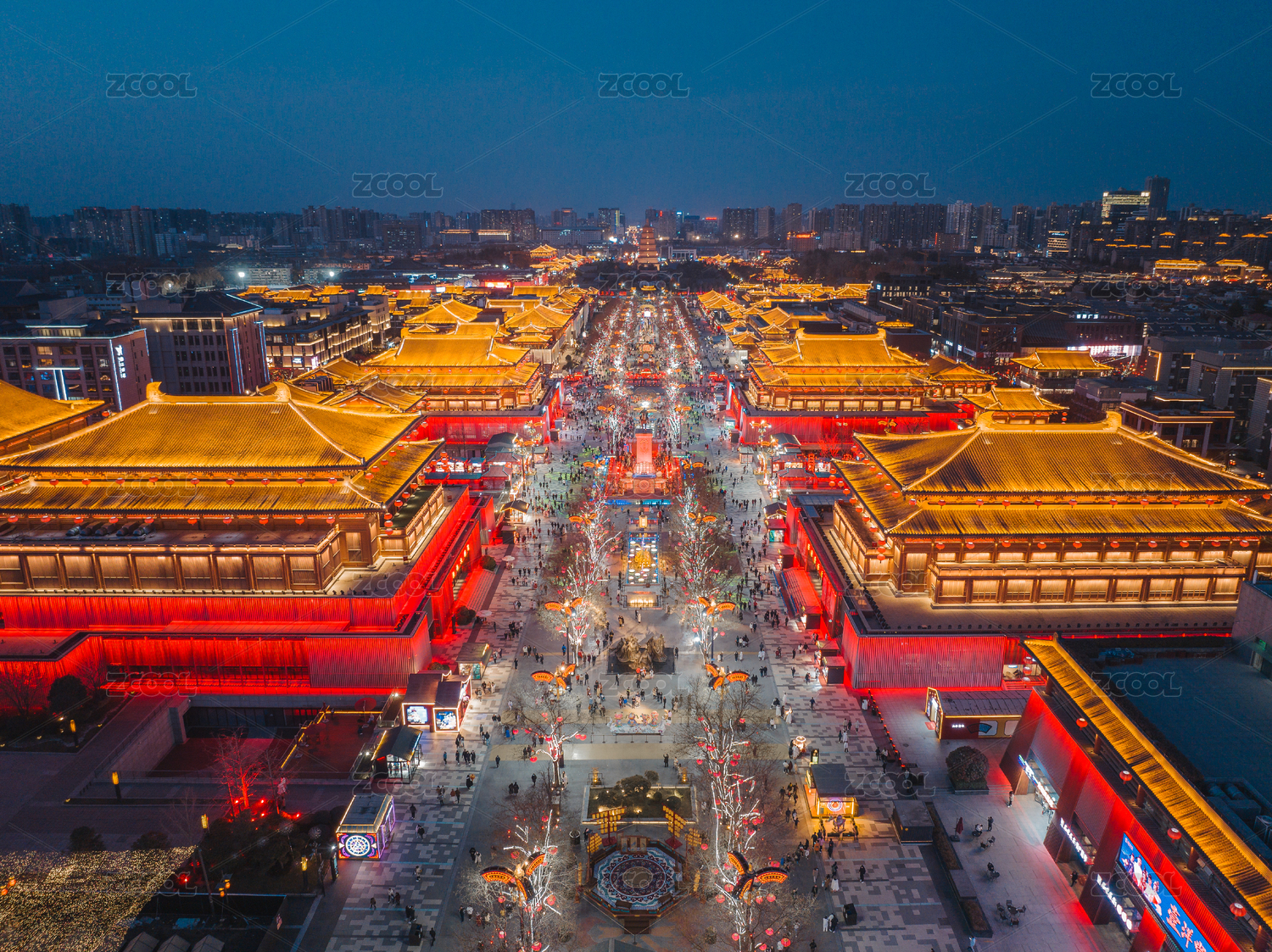 航拍西安大雁塔大唐不夜城城市风光夜景