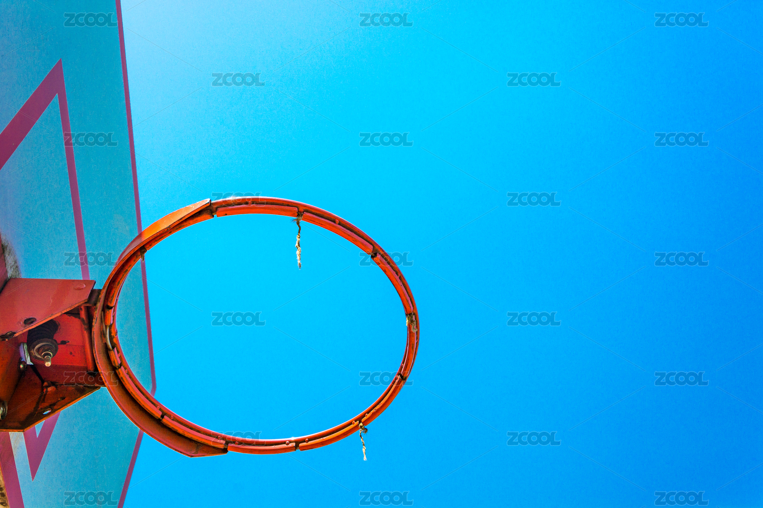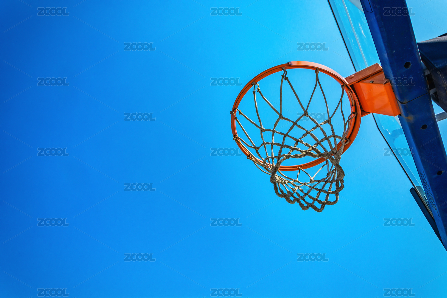 蓝天篮板篮球框特写