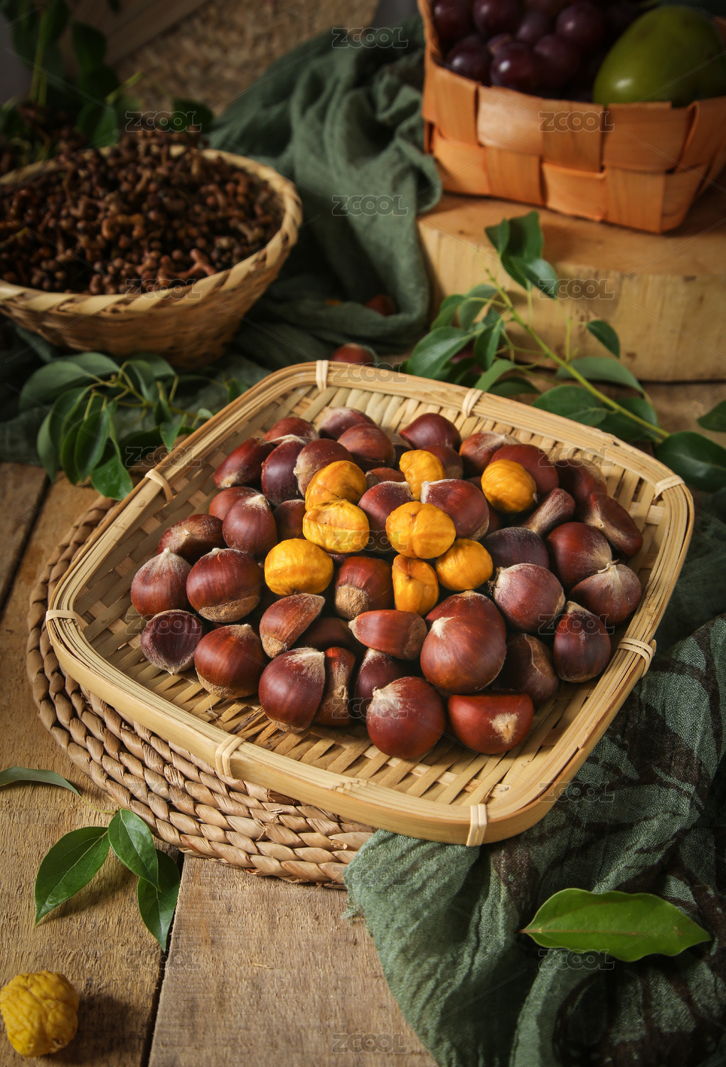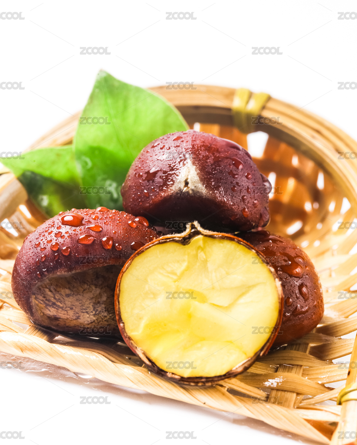 白底上放一篮板栗