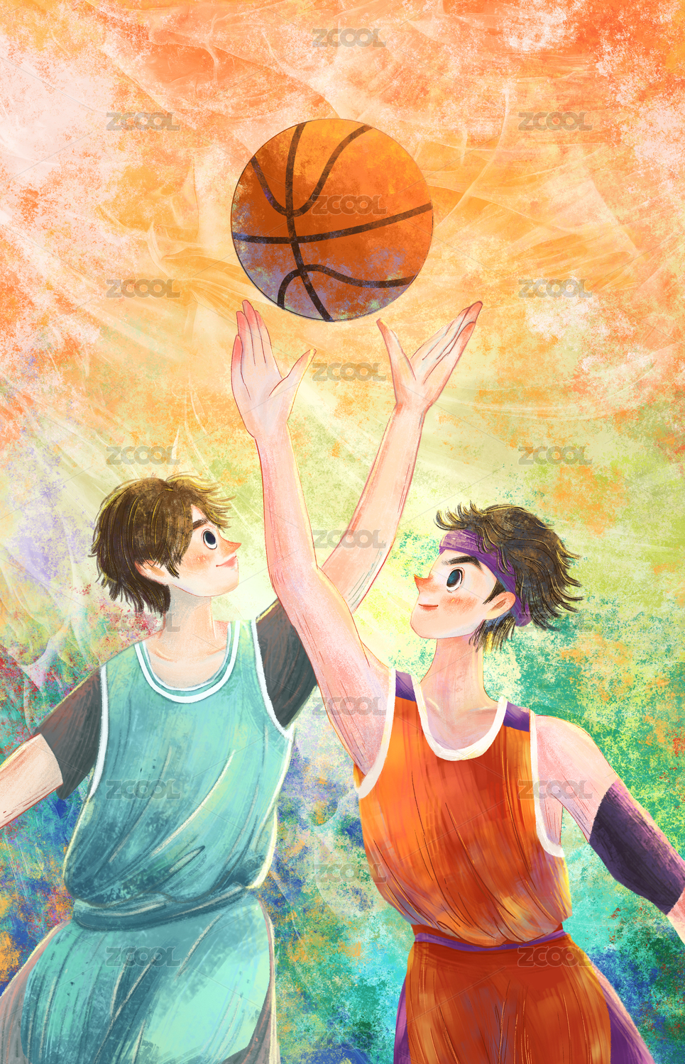 体育精神 两个少年抢篮板