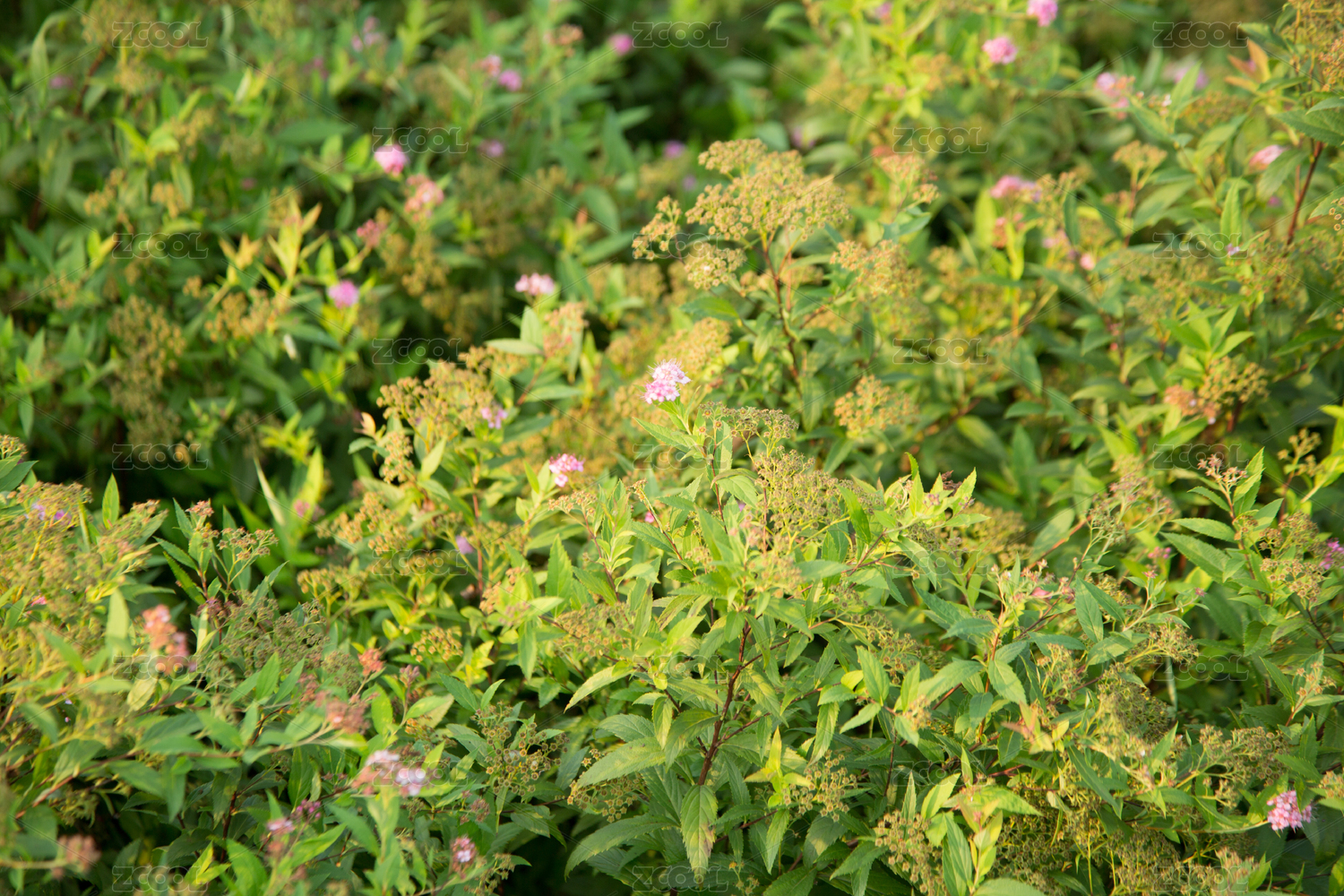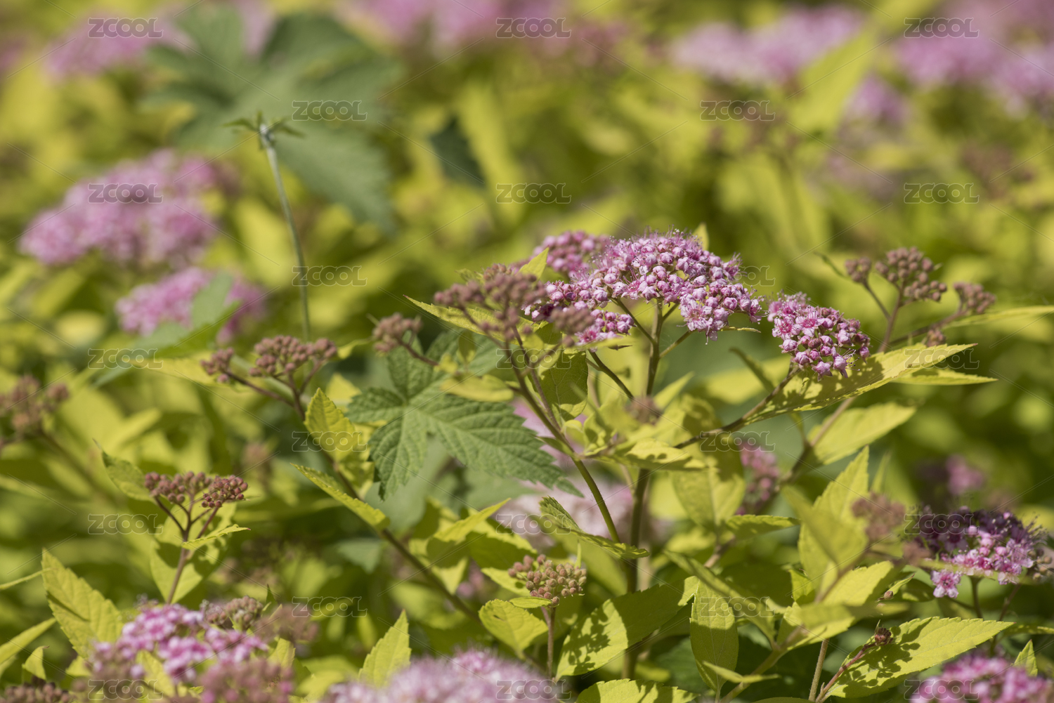 户外花团锦簇的粉花绣线菊
