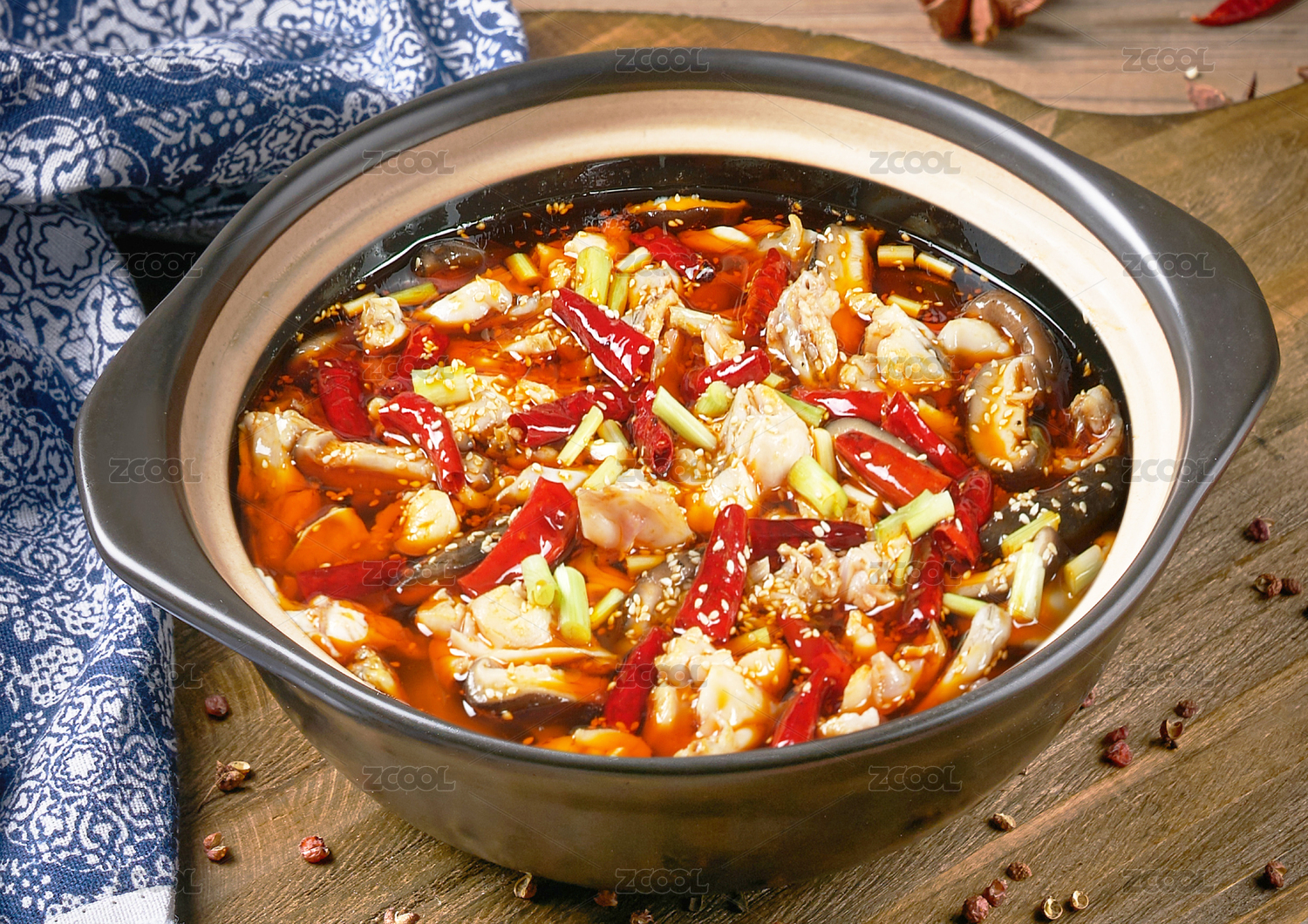 砂锅里的川菜江湖菜水煮酸菜泡椒牛蛙青蛙