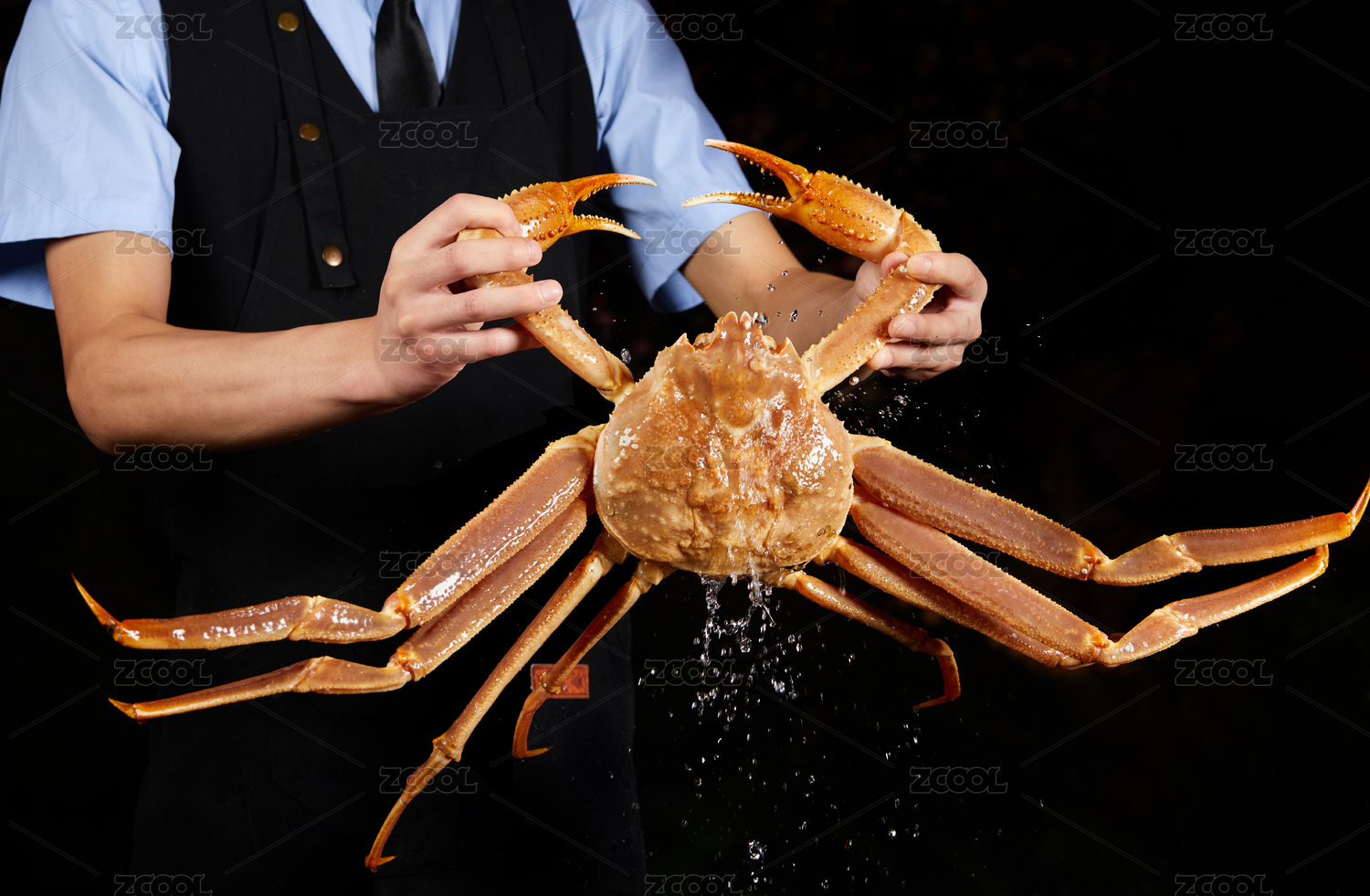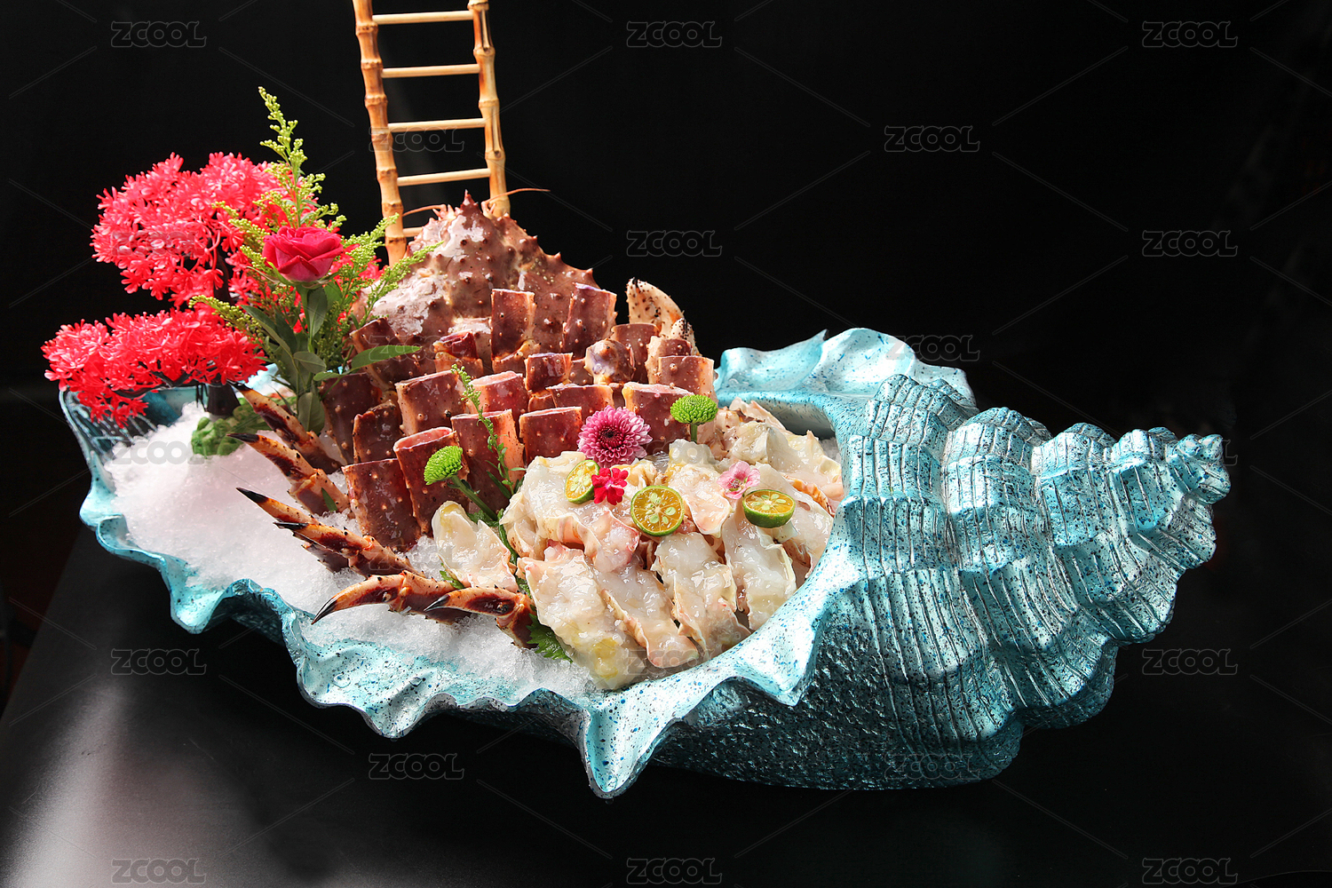 黑色背景冰块上放着阿拉斯加长脚蟹