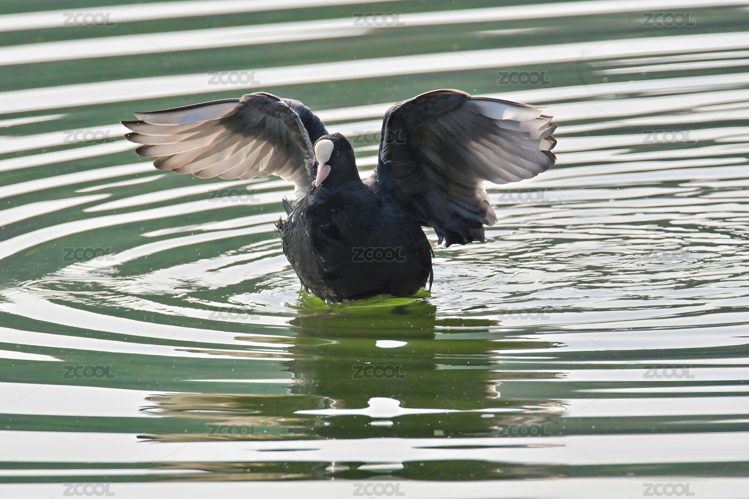 成都浣花溪湿地公园池塘里一只白骨顶鸡正张