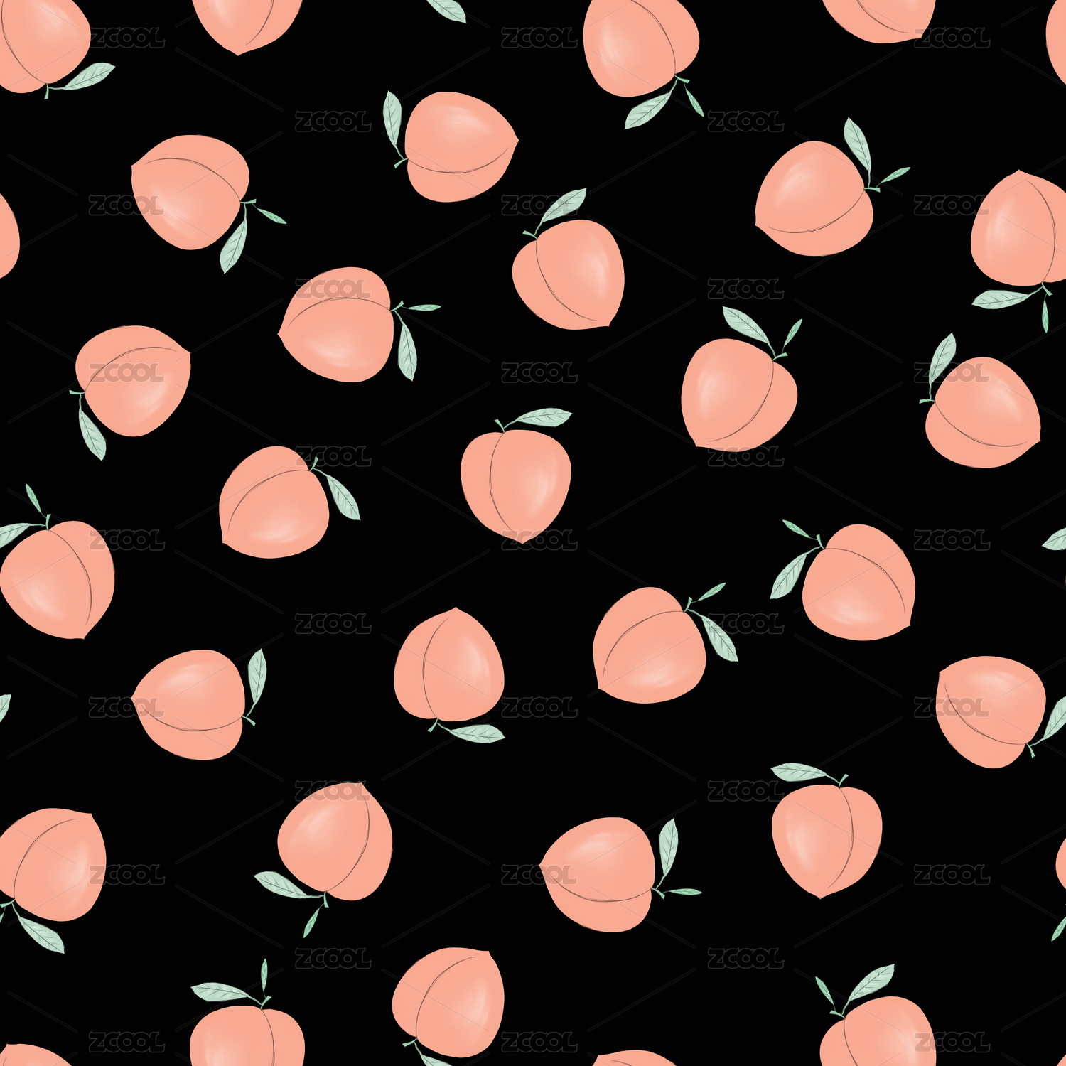 黑色背景的无缝连续水蜜桃图案