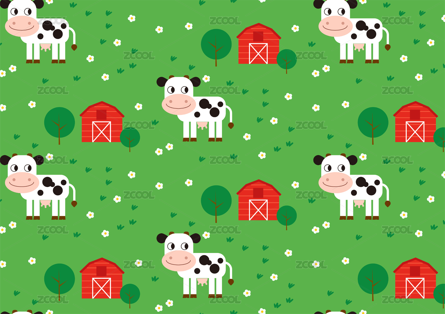 卡通奶牛草地无缝连续底纹图案