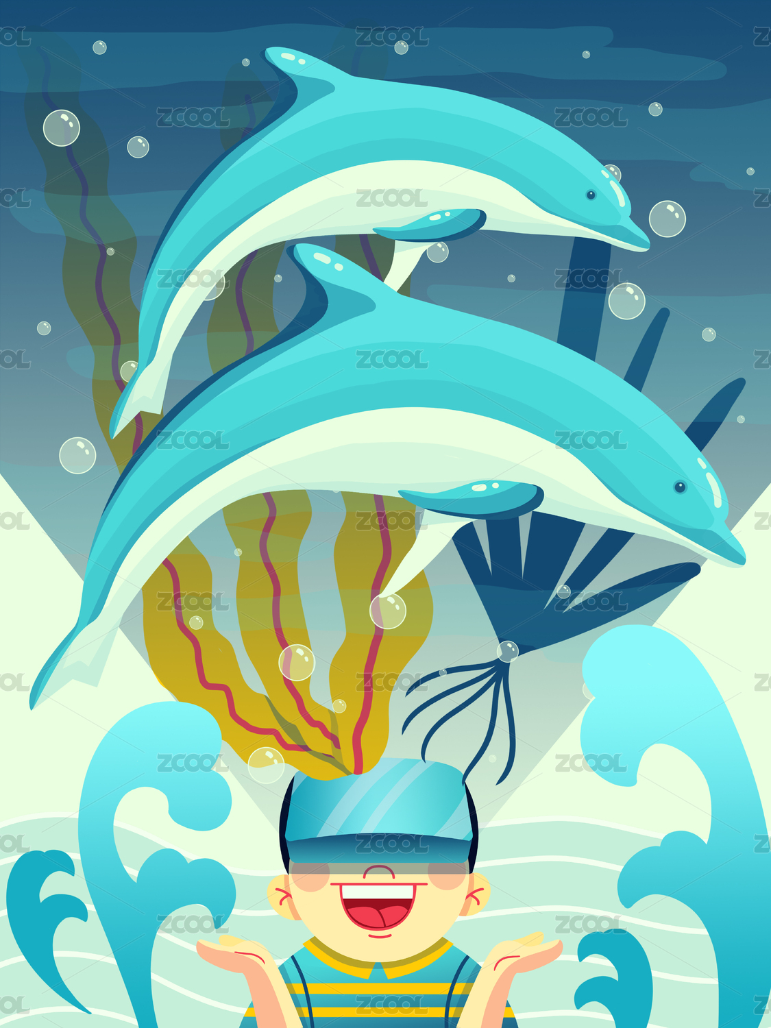 一个戴着VR眼镜的男孩正在体验VR新科技