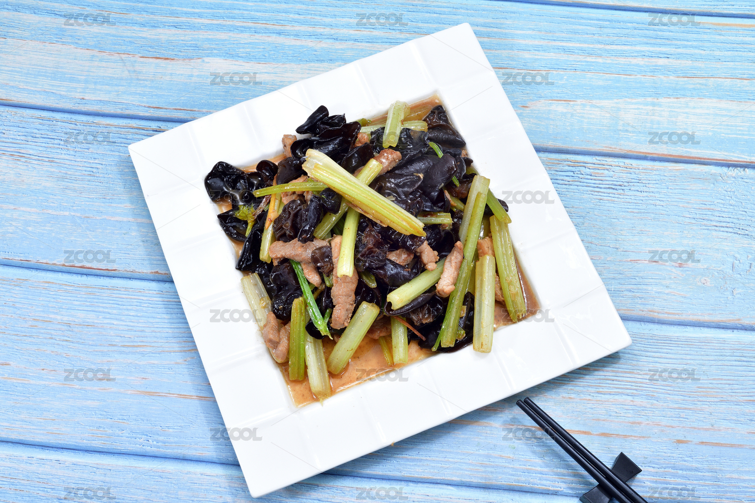 一盘芹菜木耳炒肉片