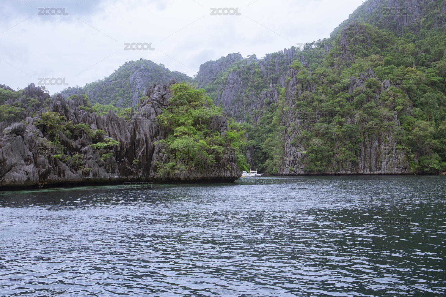 菲律宾科隆凯央根湖的火山熔岩海水腐蚀的小岛地貌和碧绿的海水