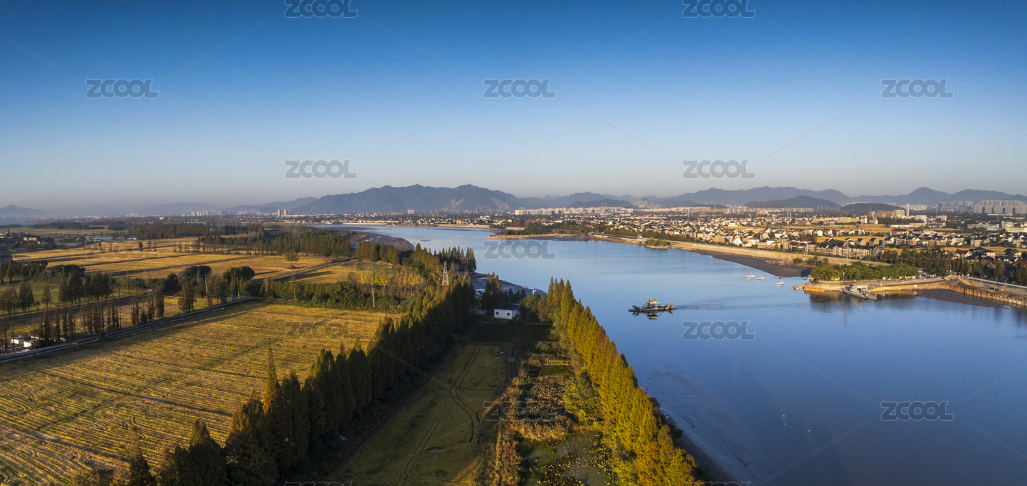 杭州西湖区钱塘江双浦五丰岛清晨风光
