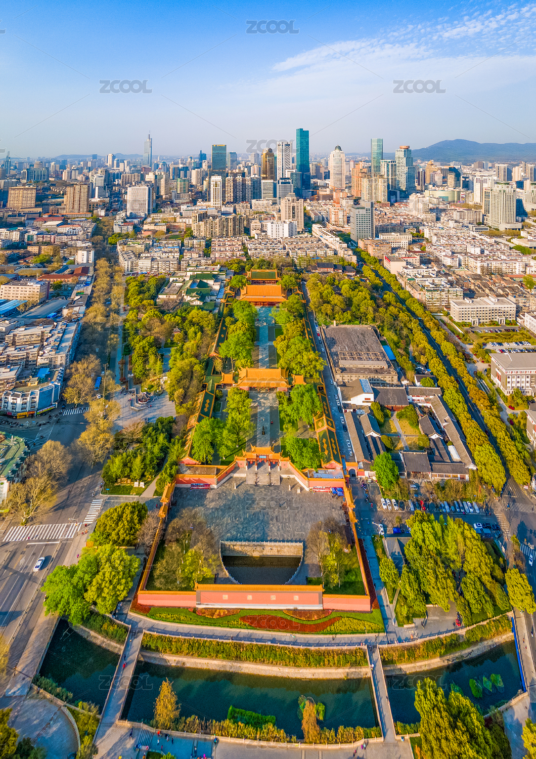 航拍江苏省南京朝天宫景区与新街口都市圈
