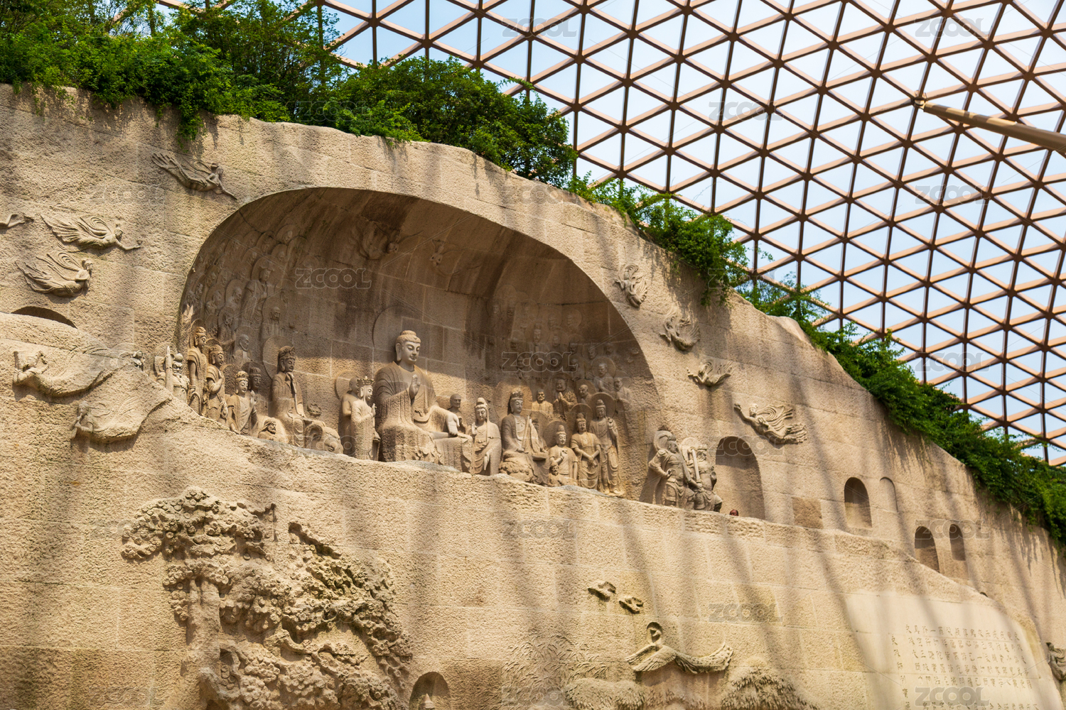 航拍日出时的南京牛首山佛顶宫与佛顶塔