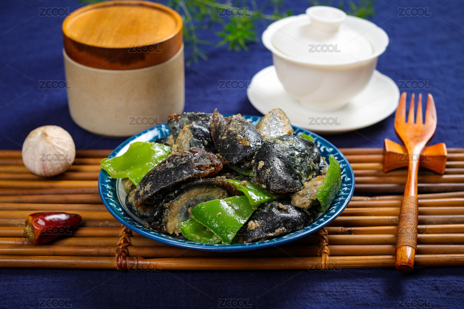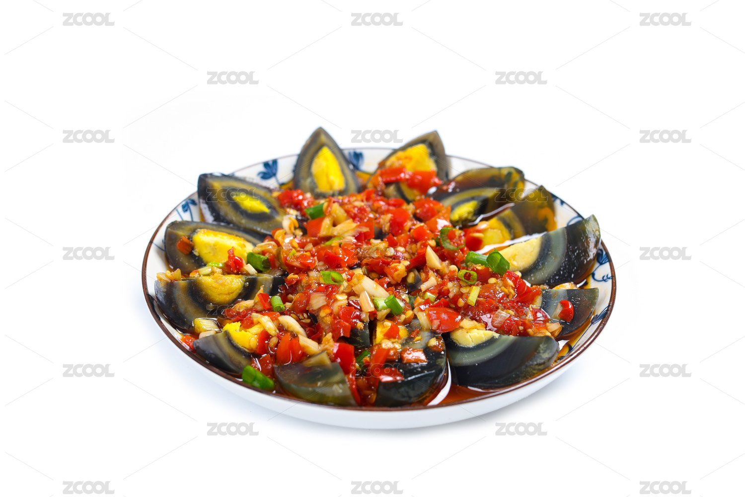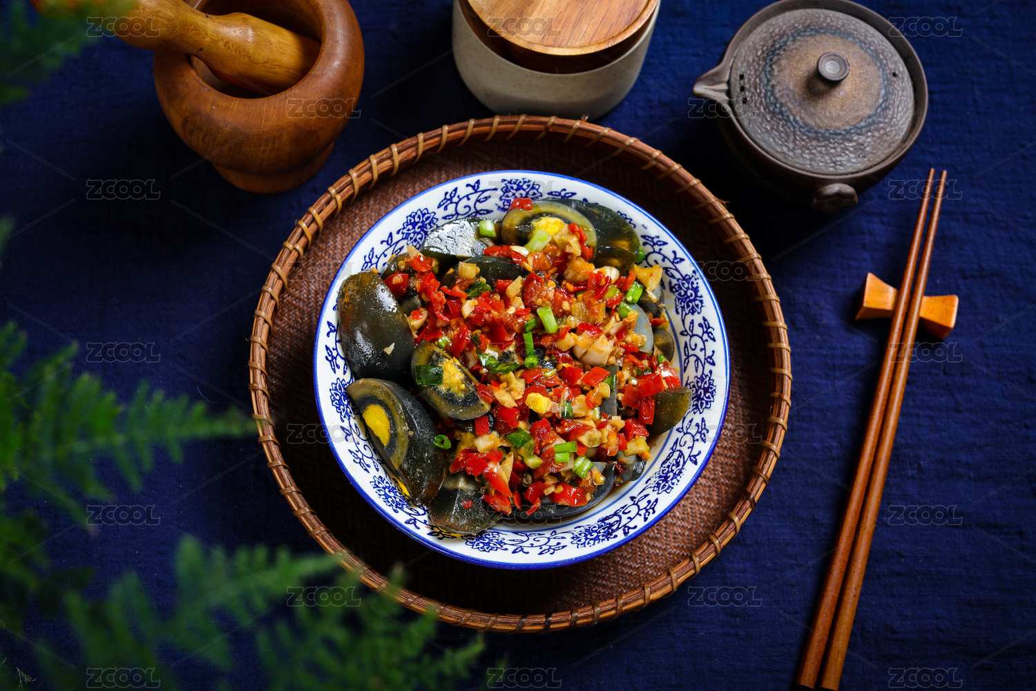 盘子里的川菜青椒炒皮蛋擂辣椒皮蛋