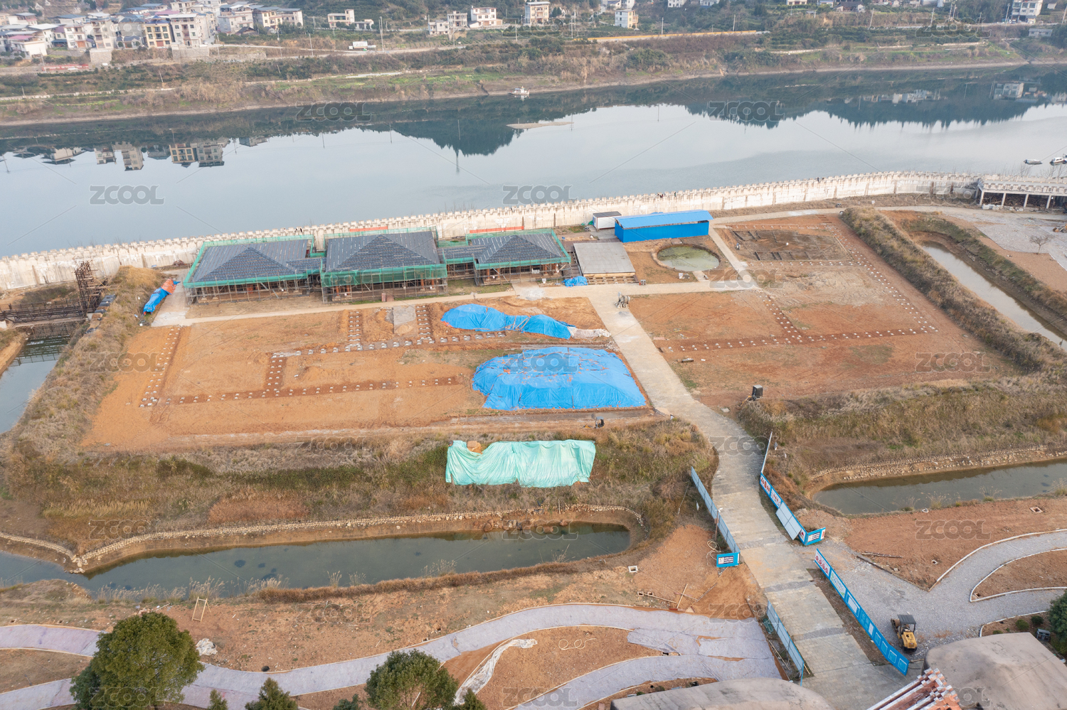 航拍湖南湘西龙山里耶古城及里耶秦简出土地