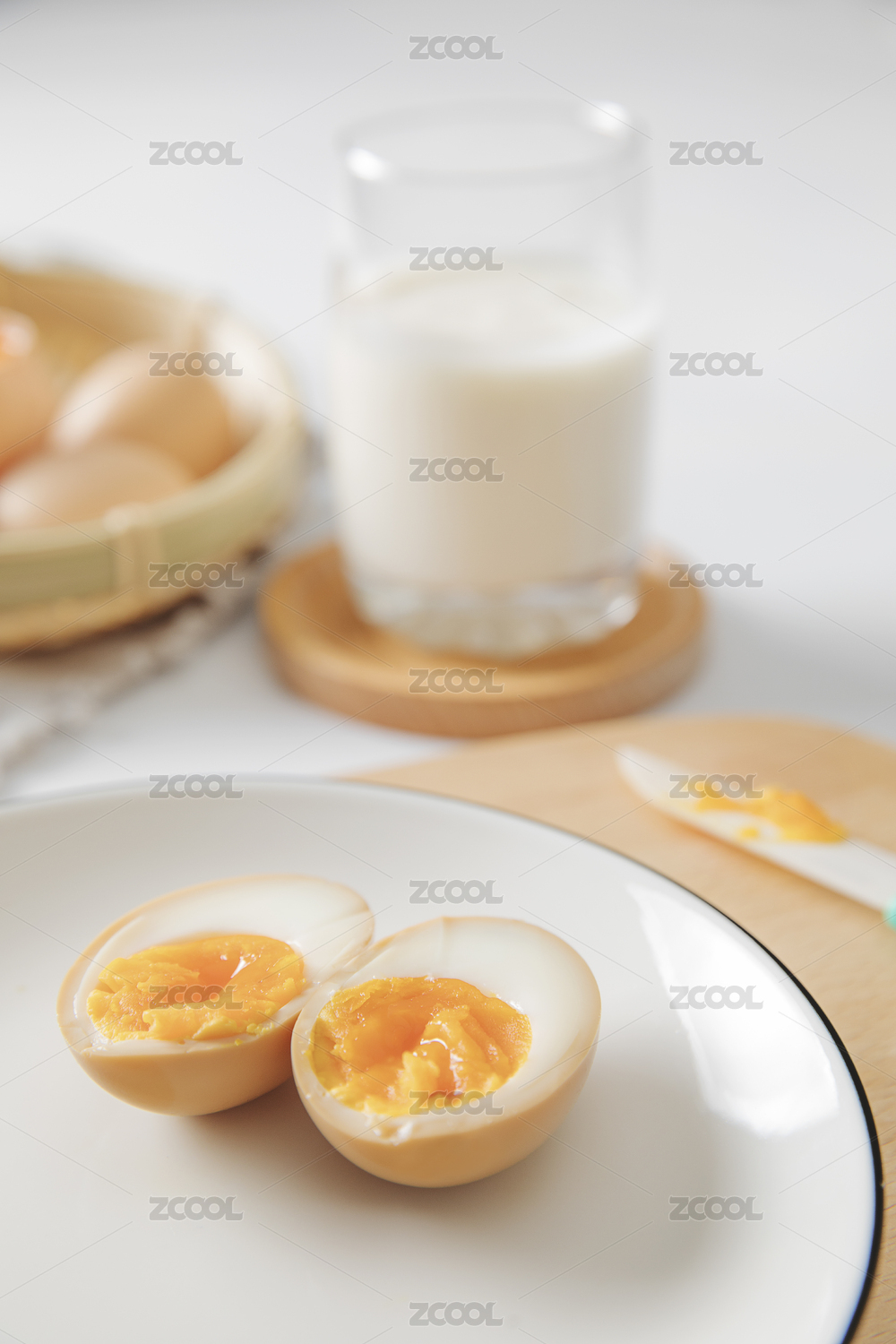 鸡蛋放在白色的瓷碗里