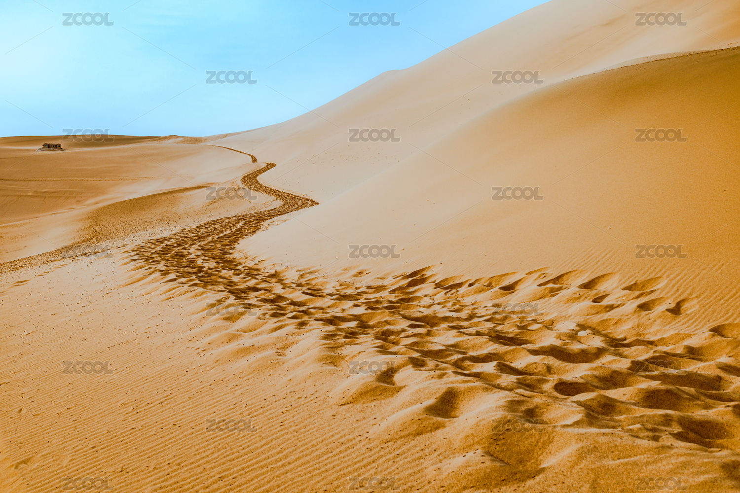 中国甘肃酒泉敦煌鸣沙山,沙漠沙山的弯曲脚印