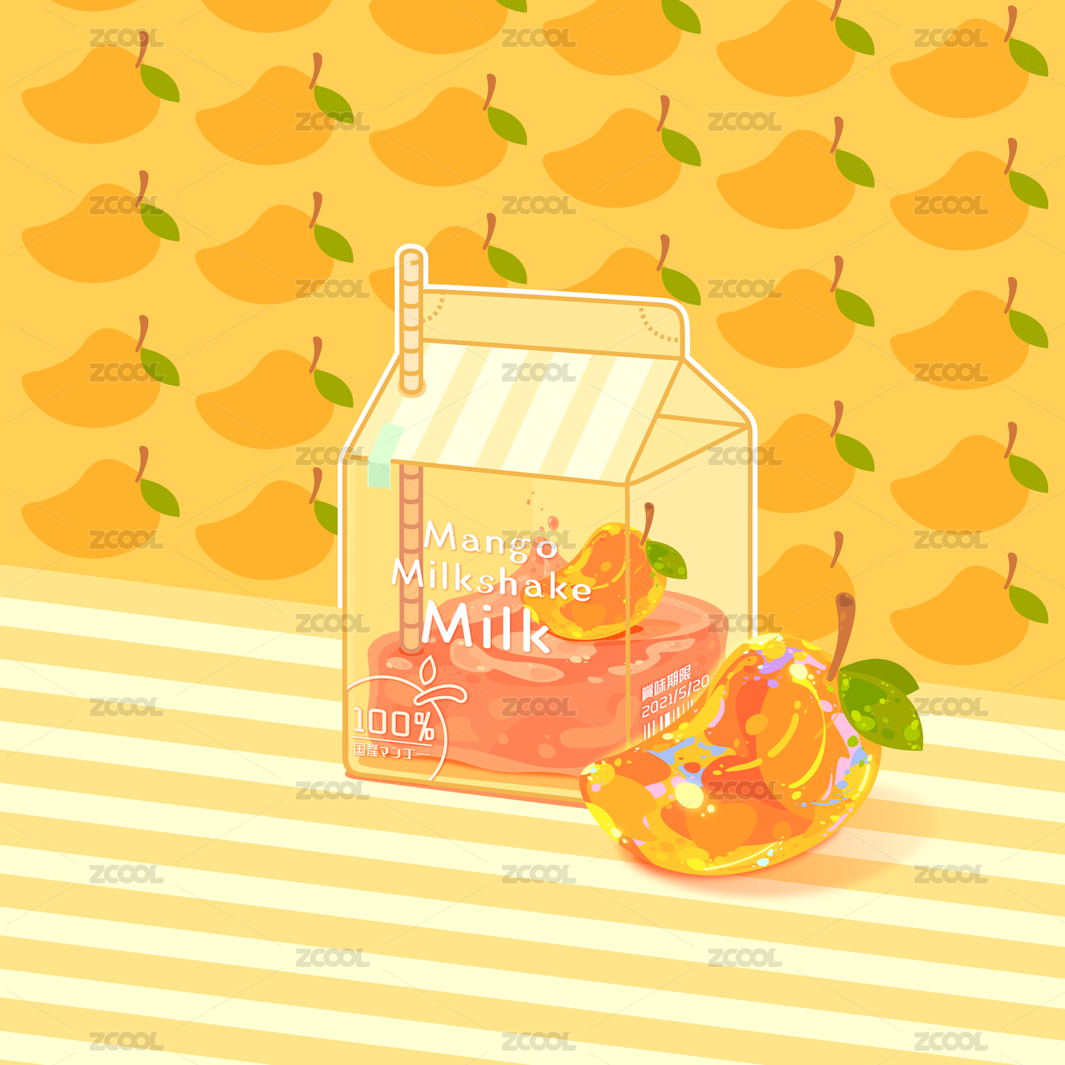 浅色背景布上的新鲜芒果果肉牛奶芒果布丁