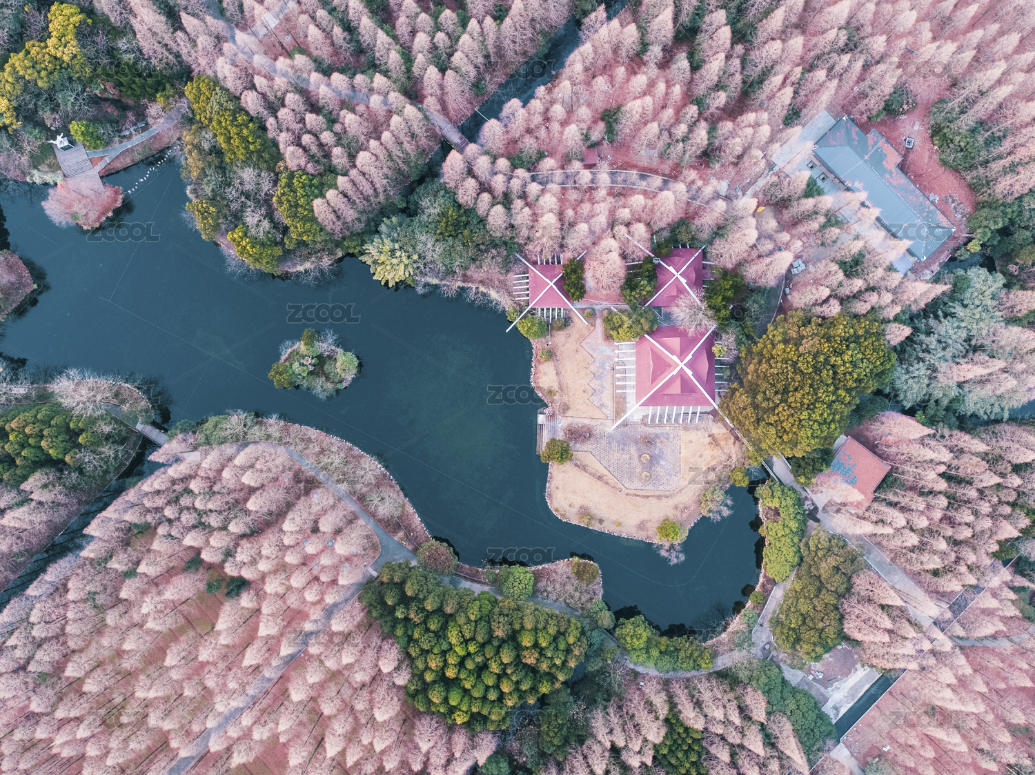 俯瞰上海东平国家森林公园的水杉林