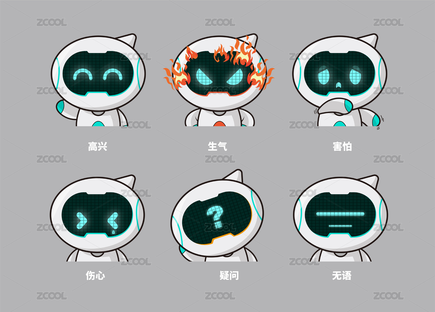 卡通机器人科技智能吉祥物表情包合集