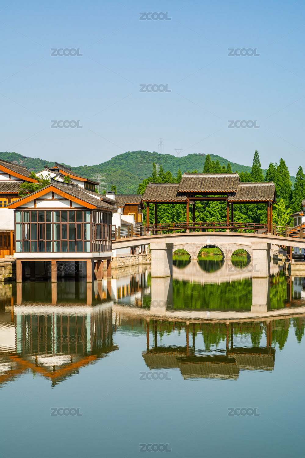 中国浙江萧山湘湖水街新中式江南风格建筑