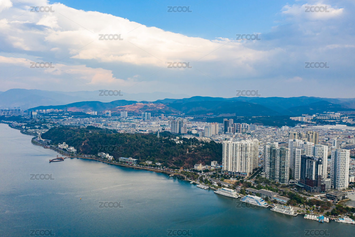 航拍云南大理洱海公园城市湖泊湿地地标建筑