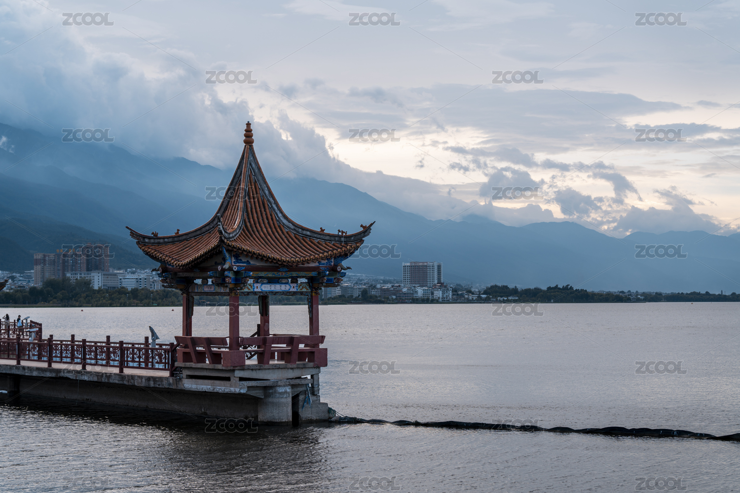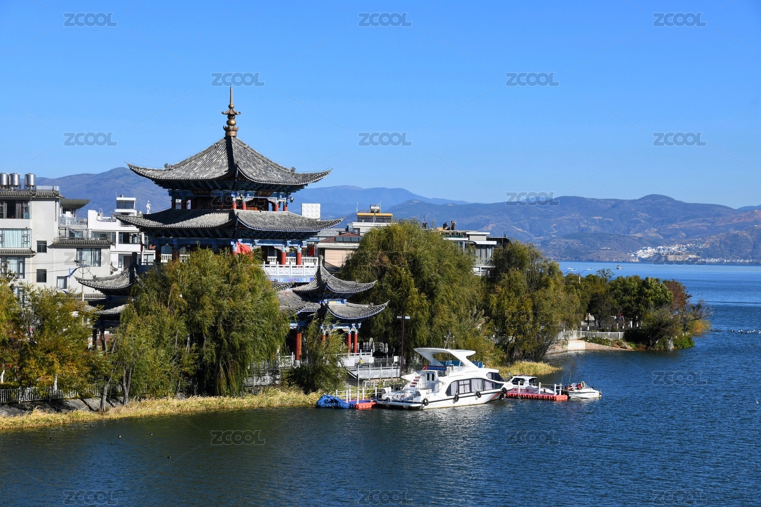 航拍云南大理洱海公园牌坊城市地标旅游景区