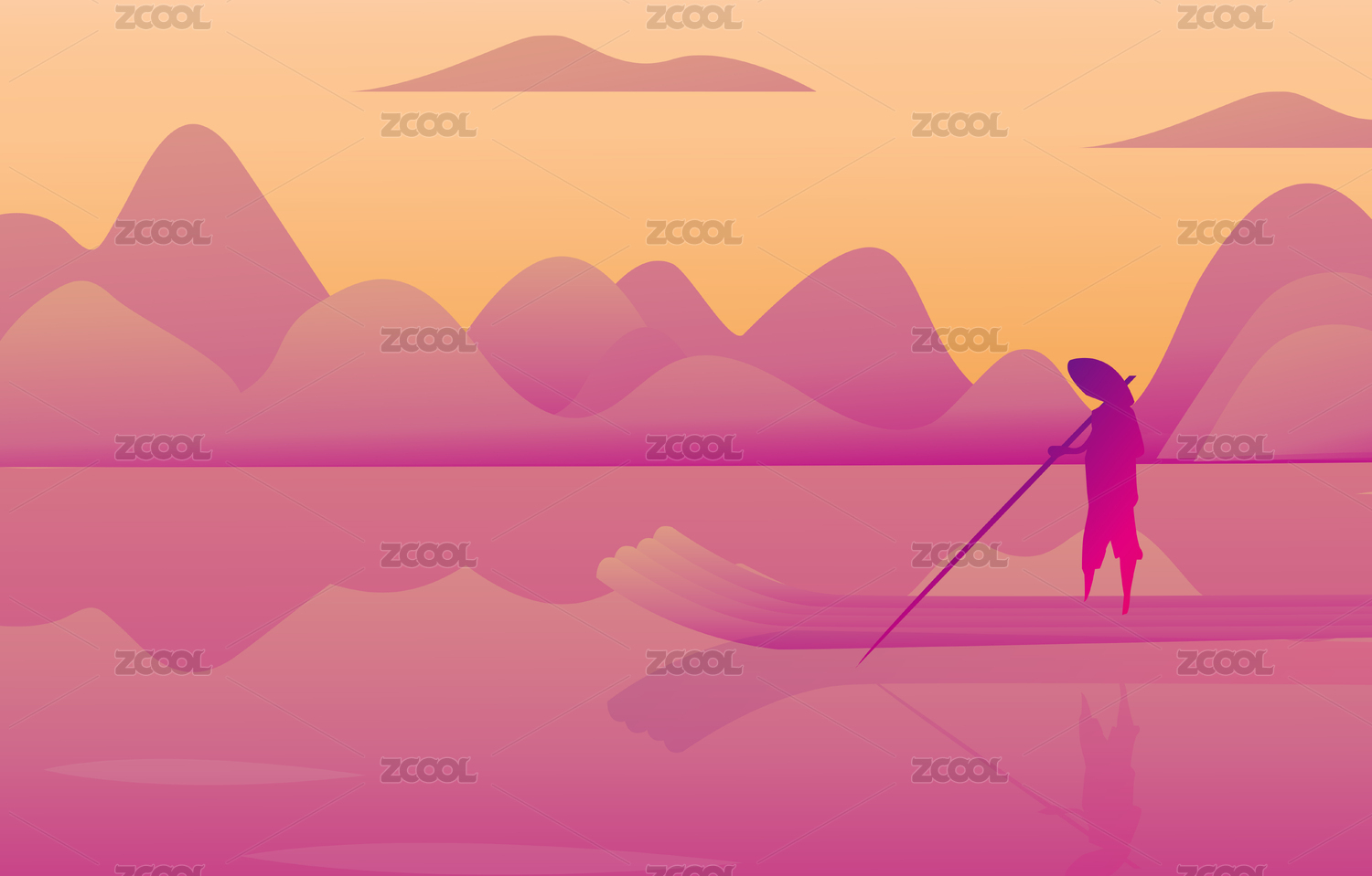 桂林山水 渔舟 倒影 水墨风景矢量剪影