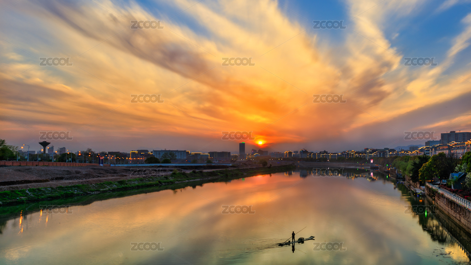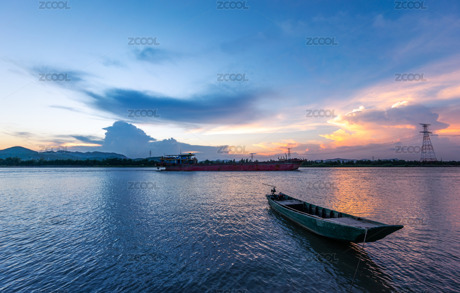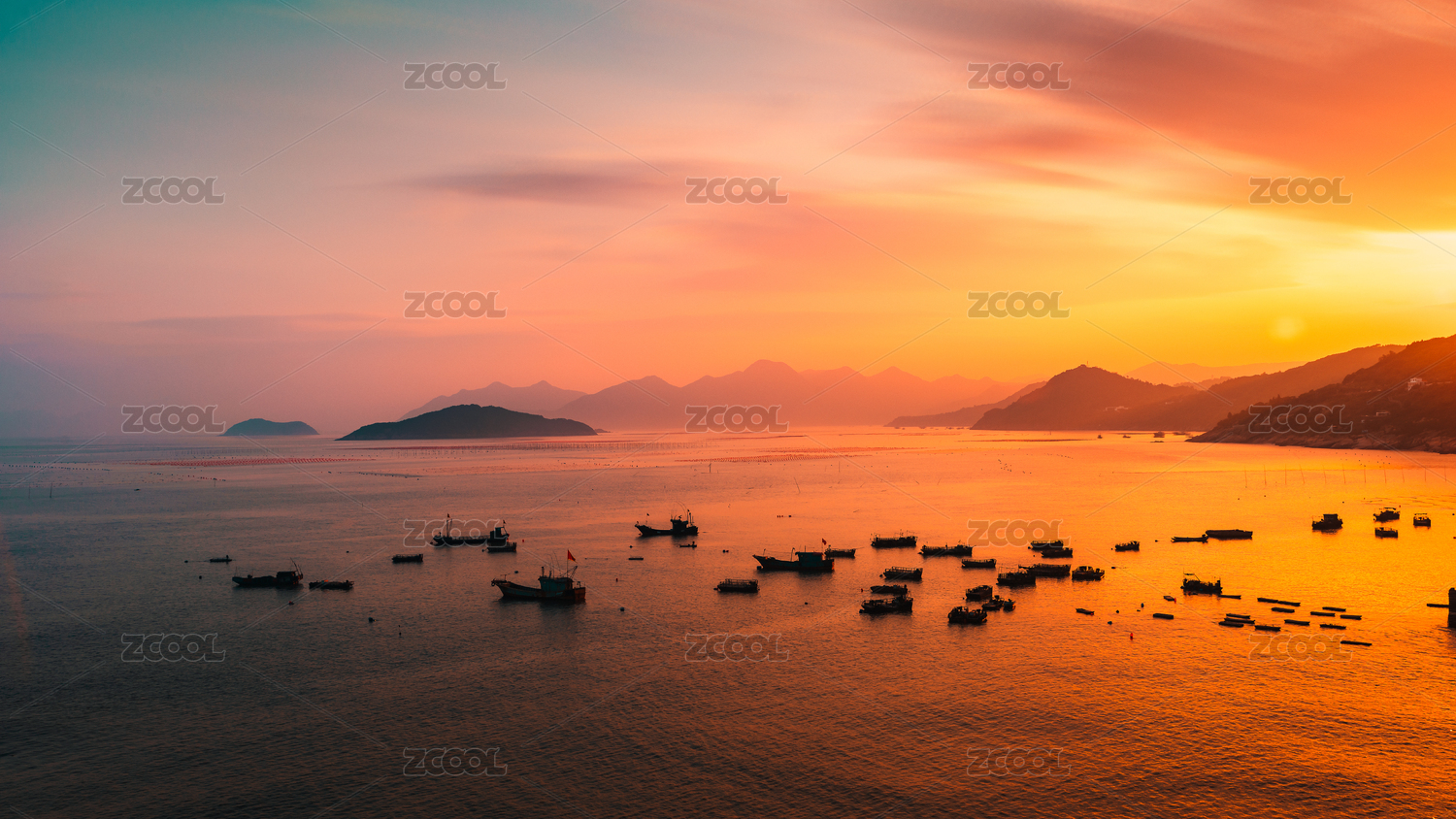 日落黄昏渔舟唱晚