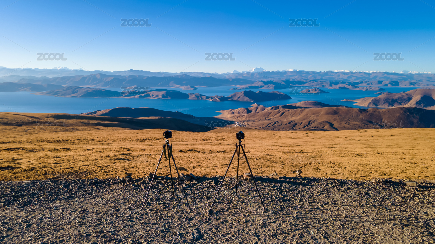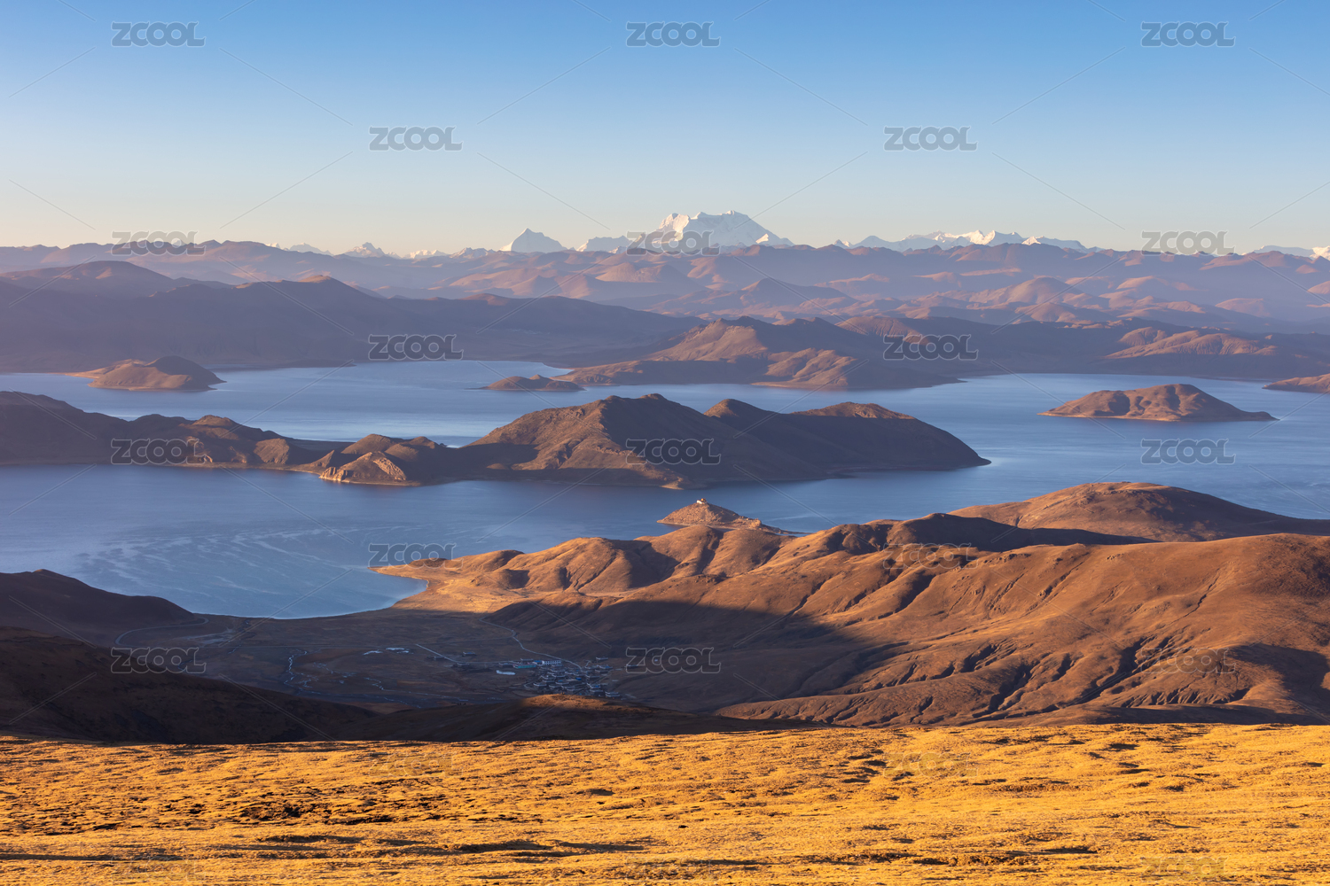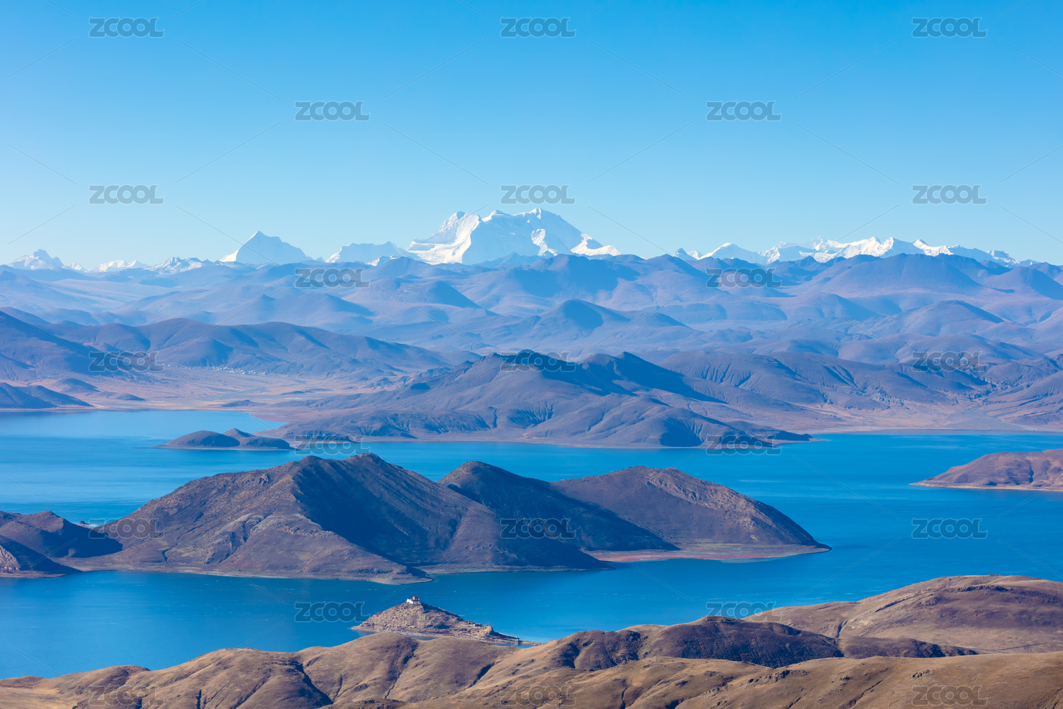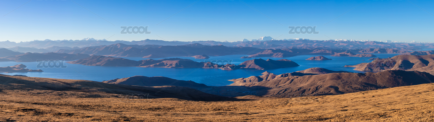中国西藏山南俯瞰羊卓雍措全景