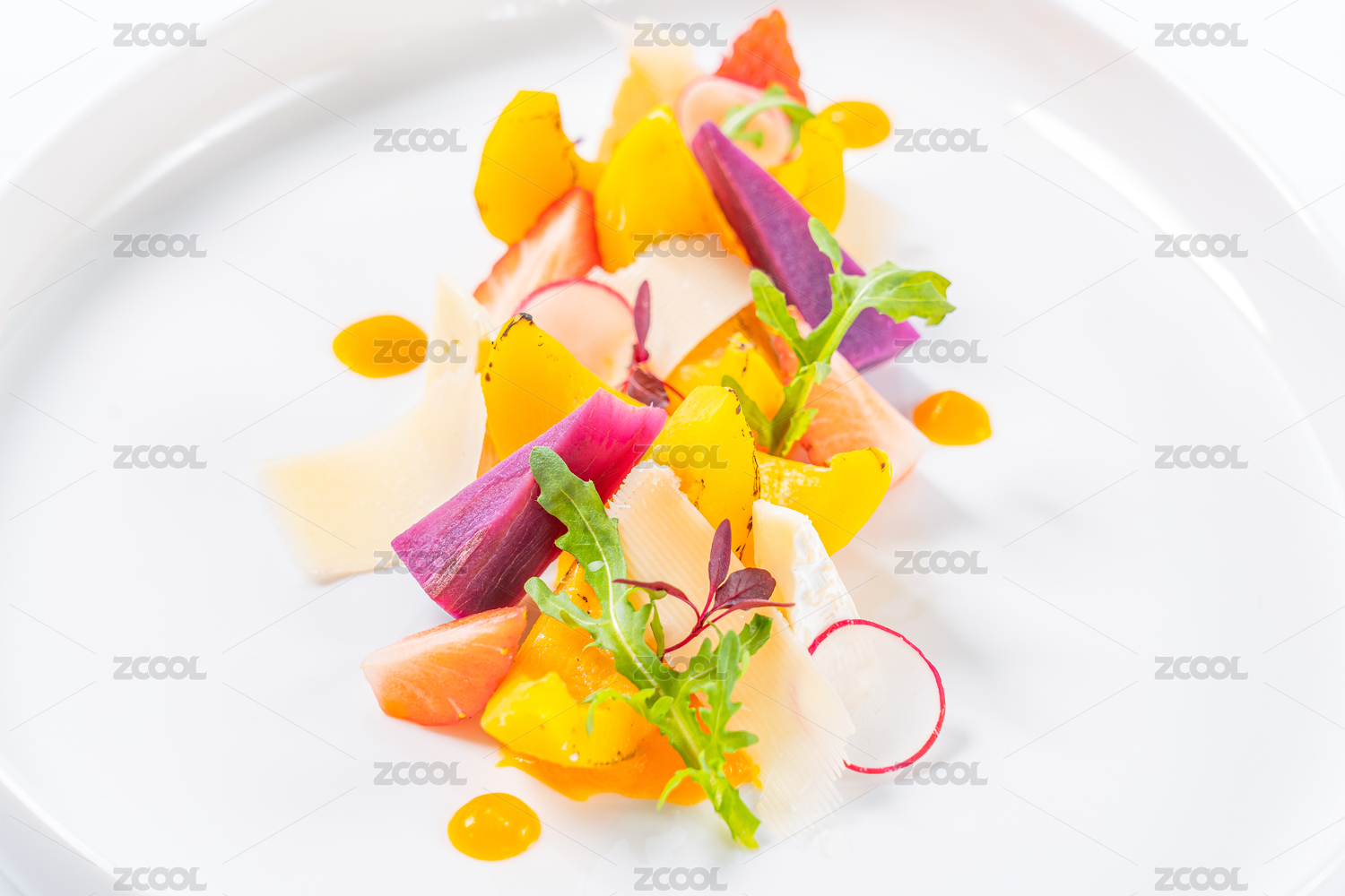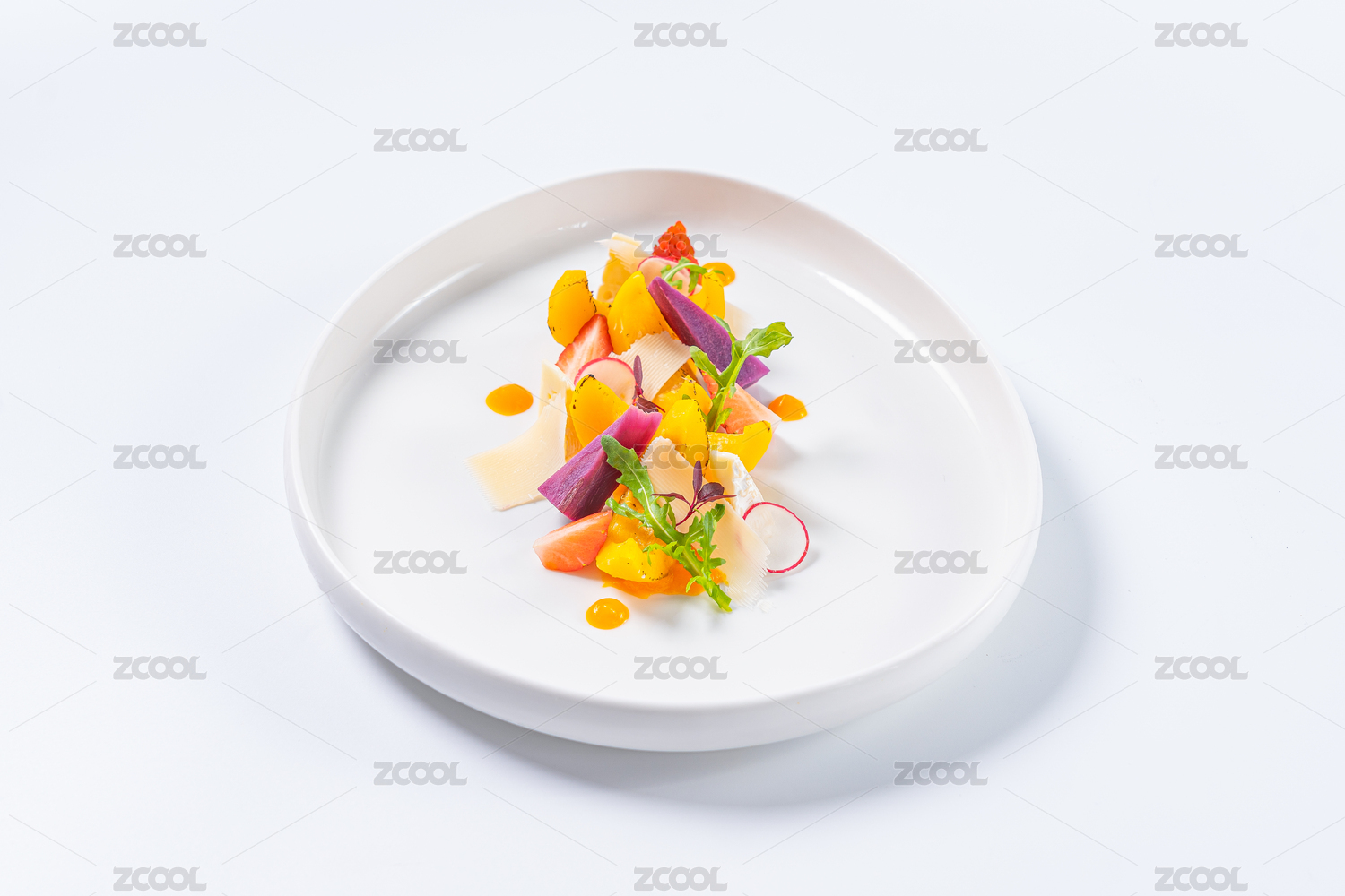 白色盘子上牛排配意大利黑醋汁西餐主菜特写