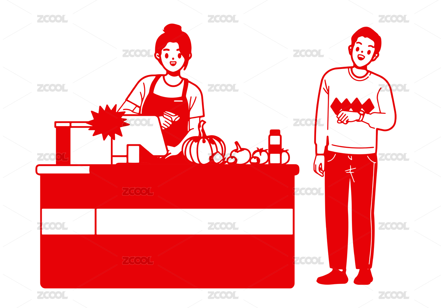 剪纸风格在超市购买商品等待结账的男生