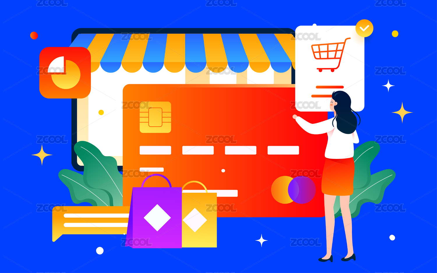 网购银行卡结账插画双十二电商网店购物海报