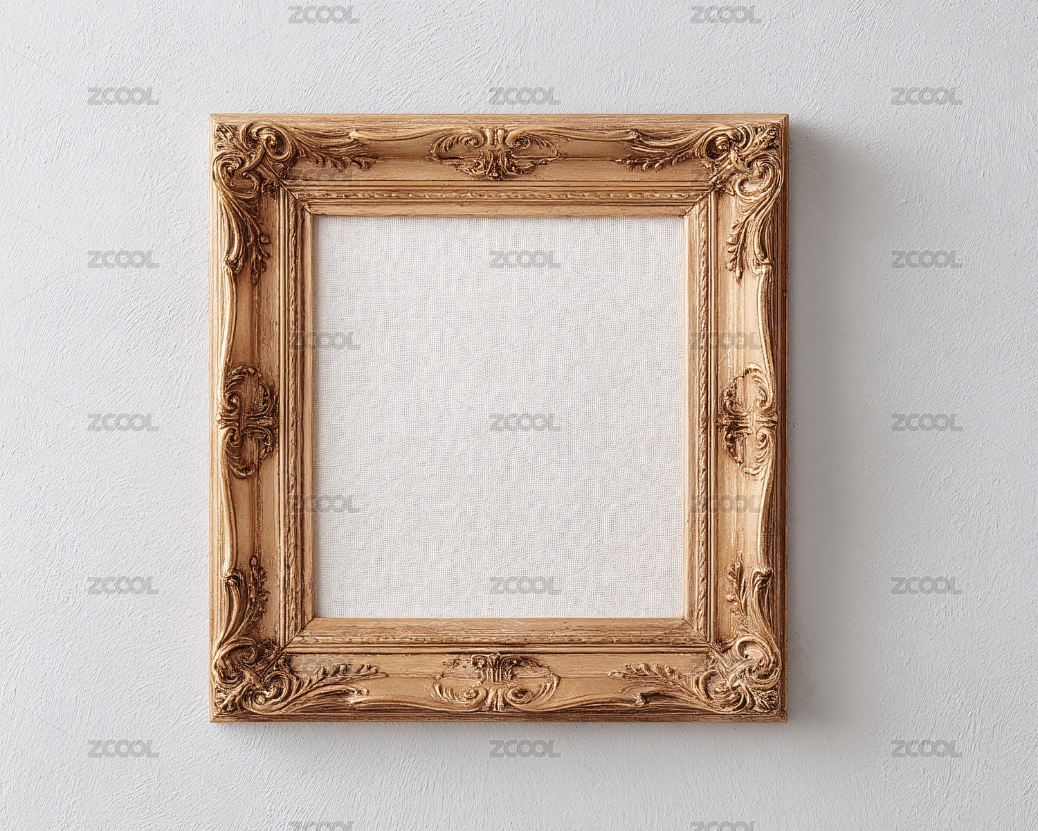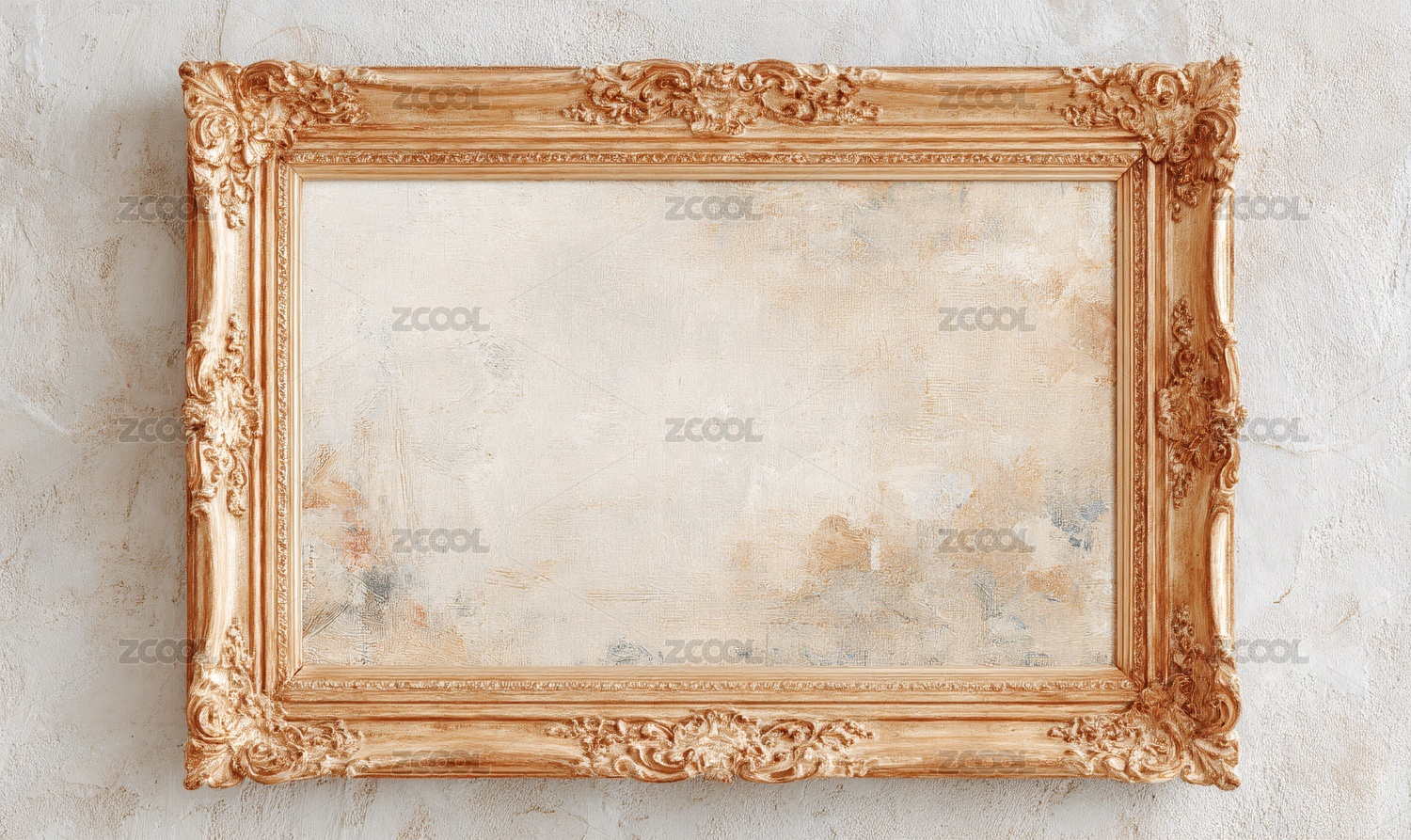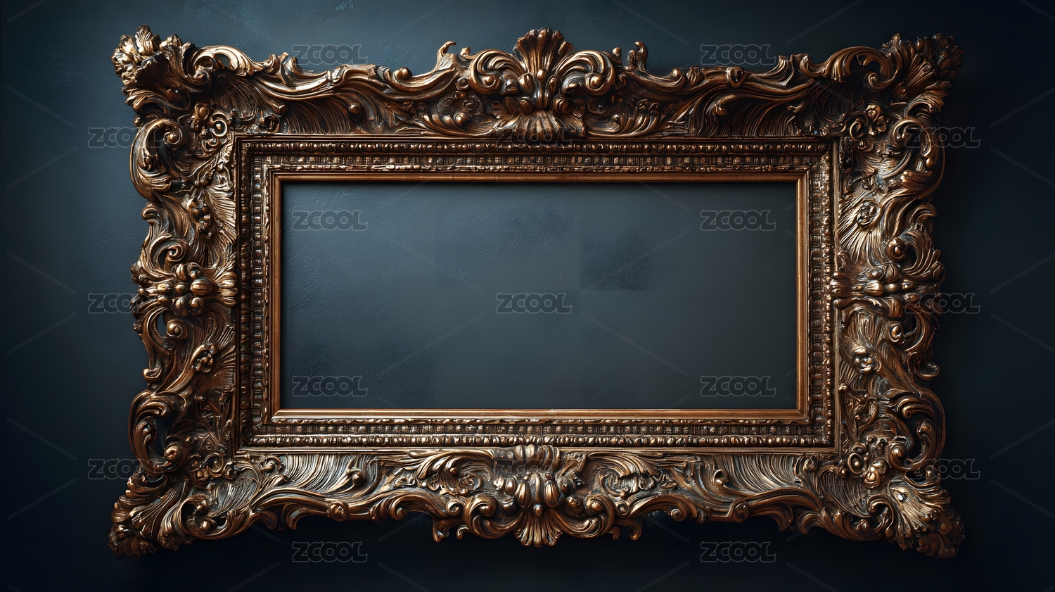 华丽雕花画框 空旷墙面 棕色雕刻 氛围感