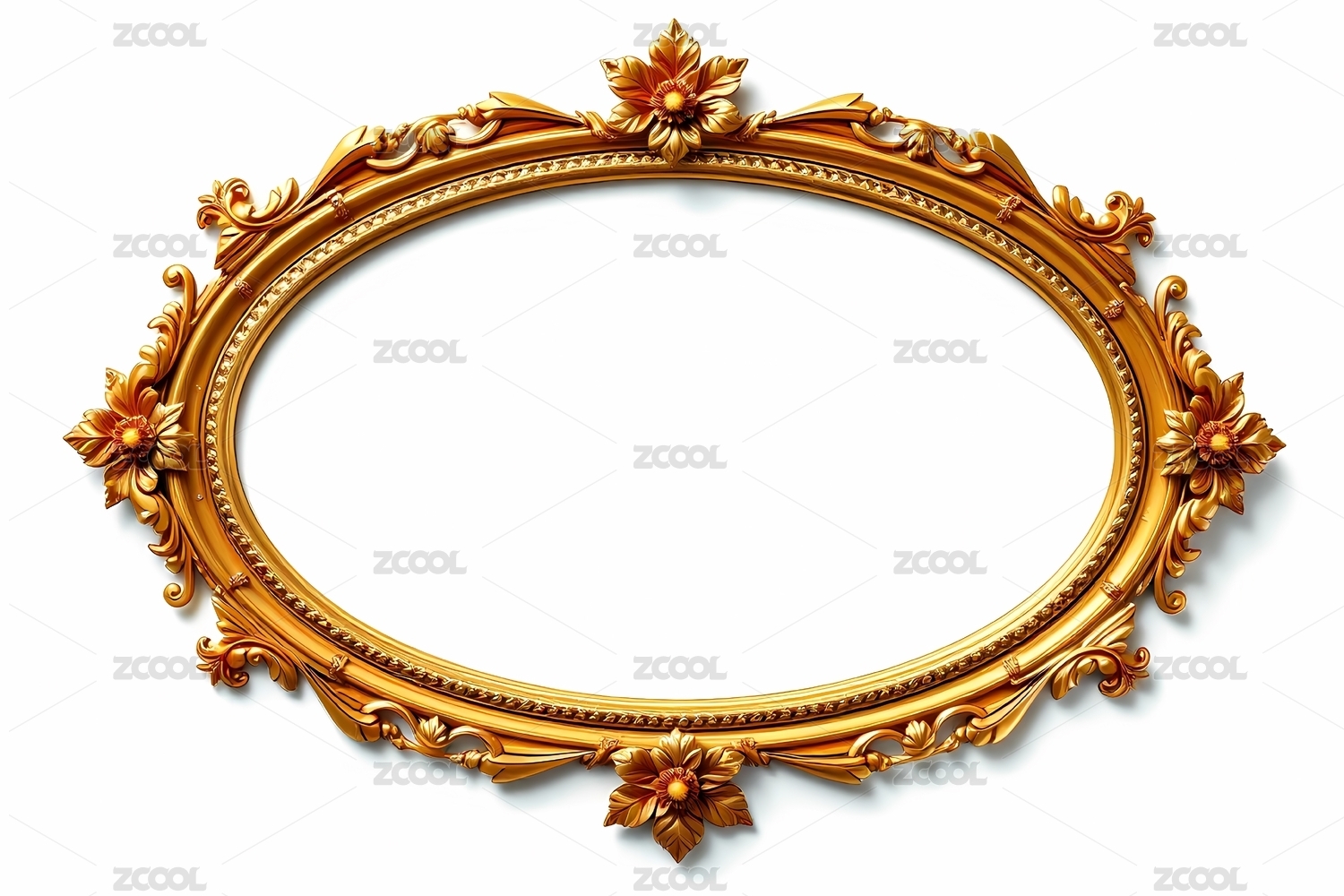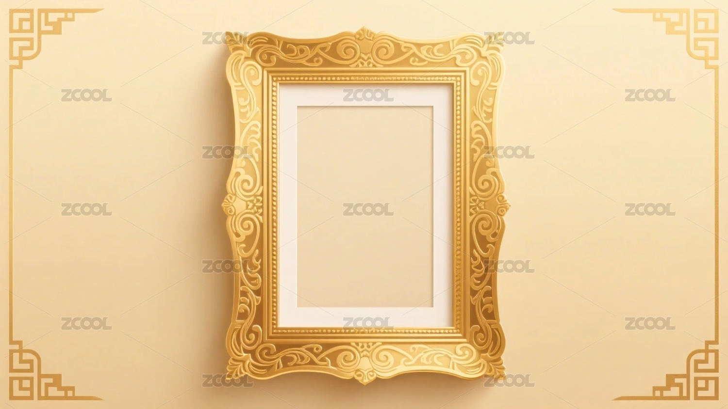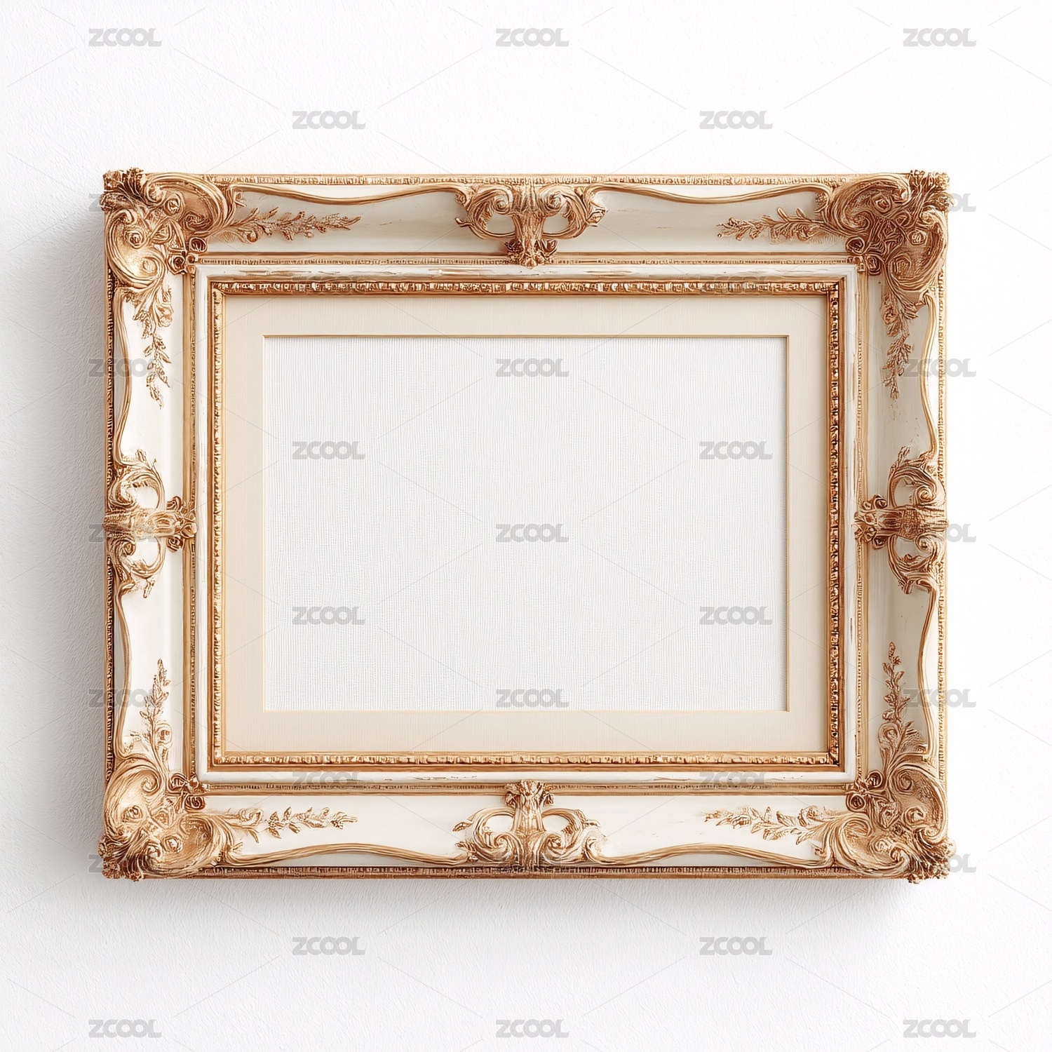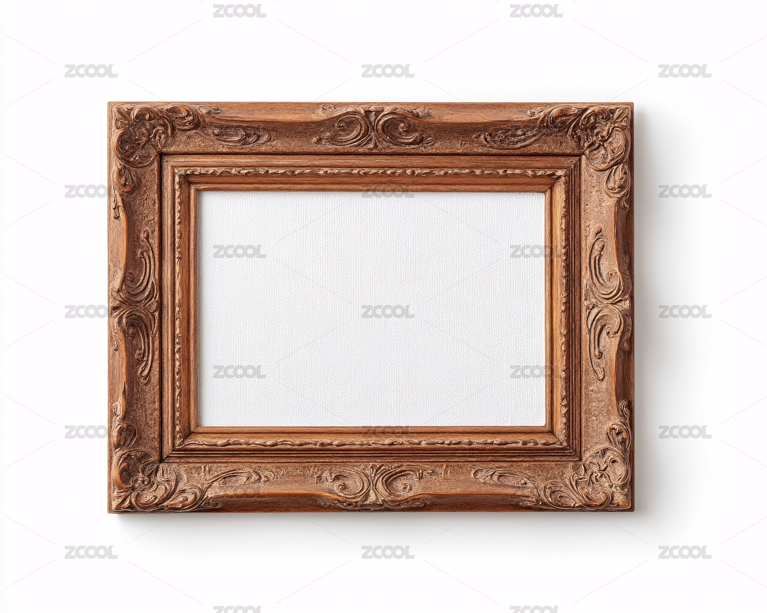 华丽雕花画框 空旷墙面 棕色雕刻 氛围感