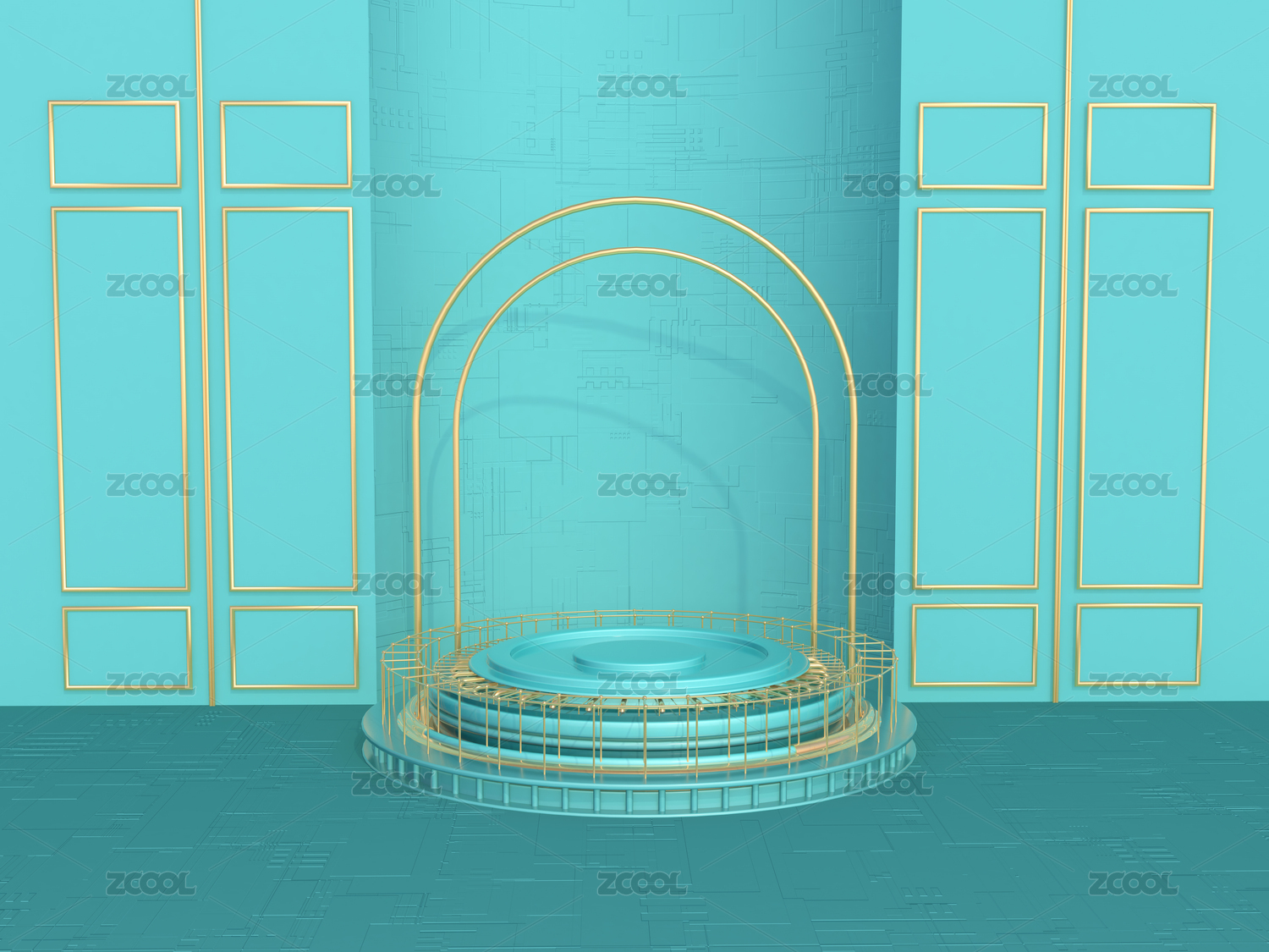 蓝色三维金边高级感舞台场景
