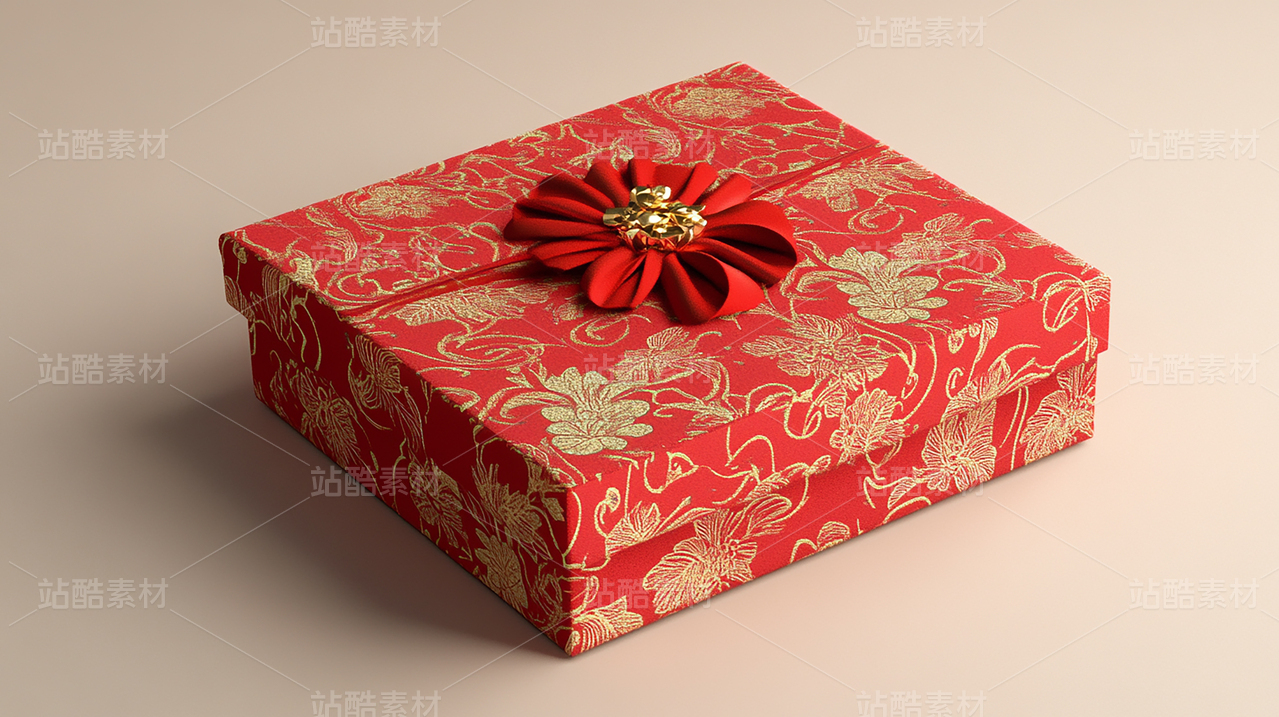 3D渲染蝴蝶结红色礼盒电商促销购物元素