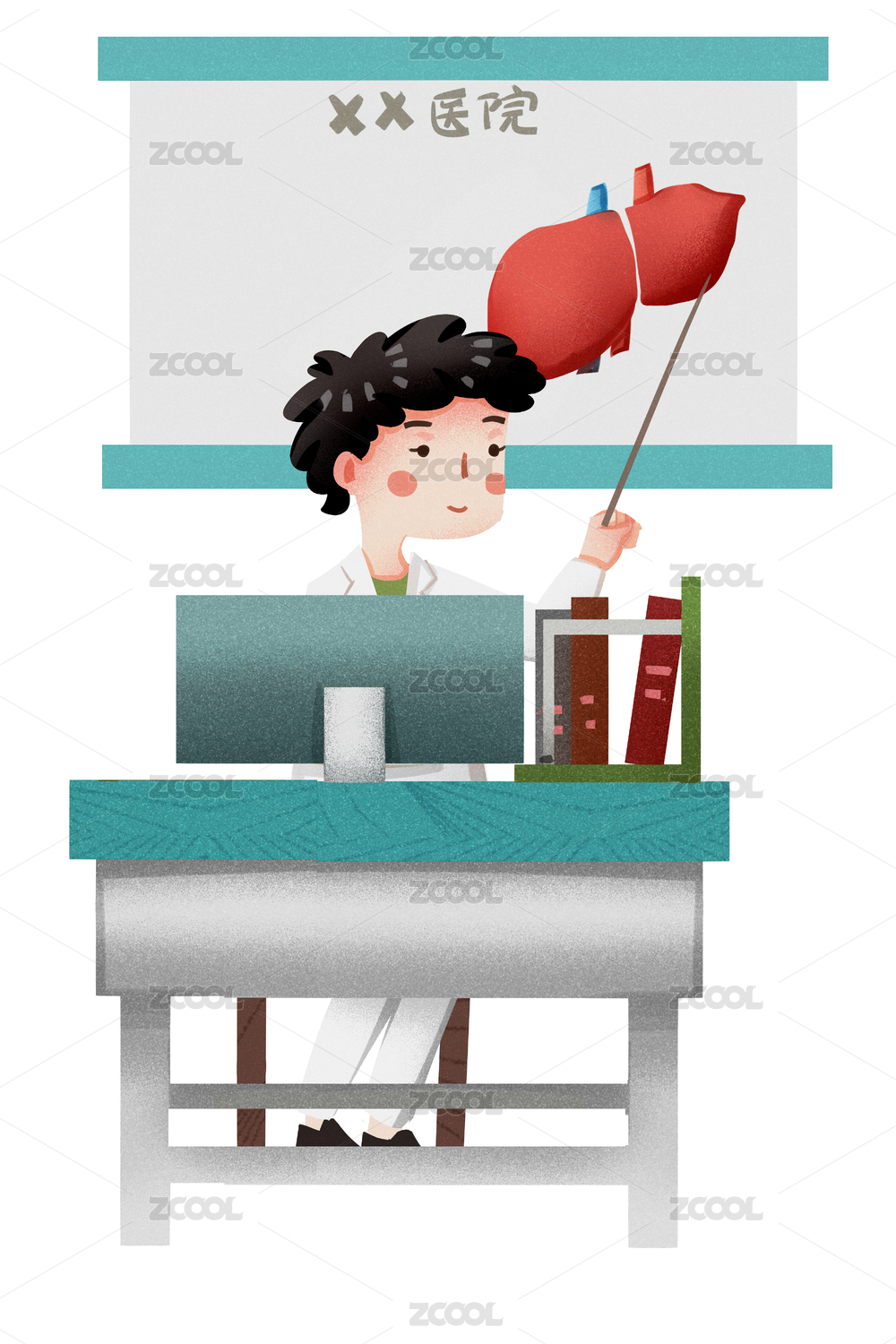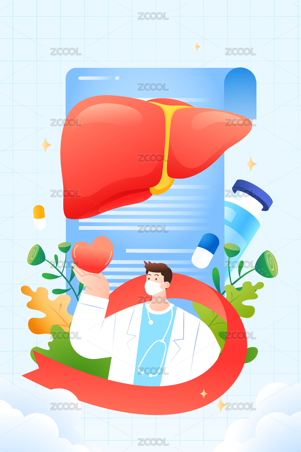 世界肝炎日医生检查肝脏治疗肝炎疾病插画
