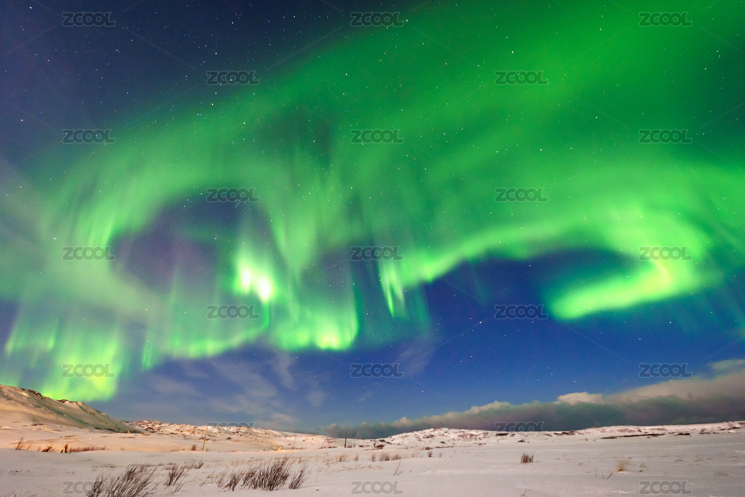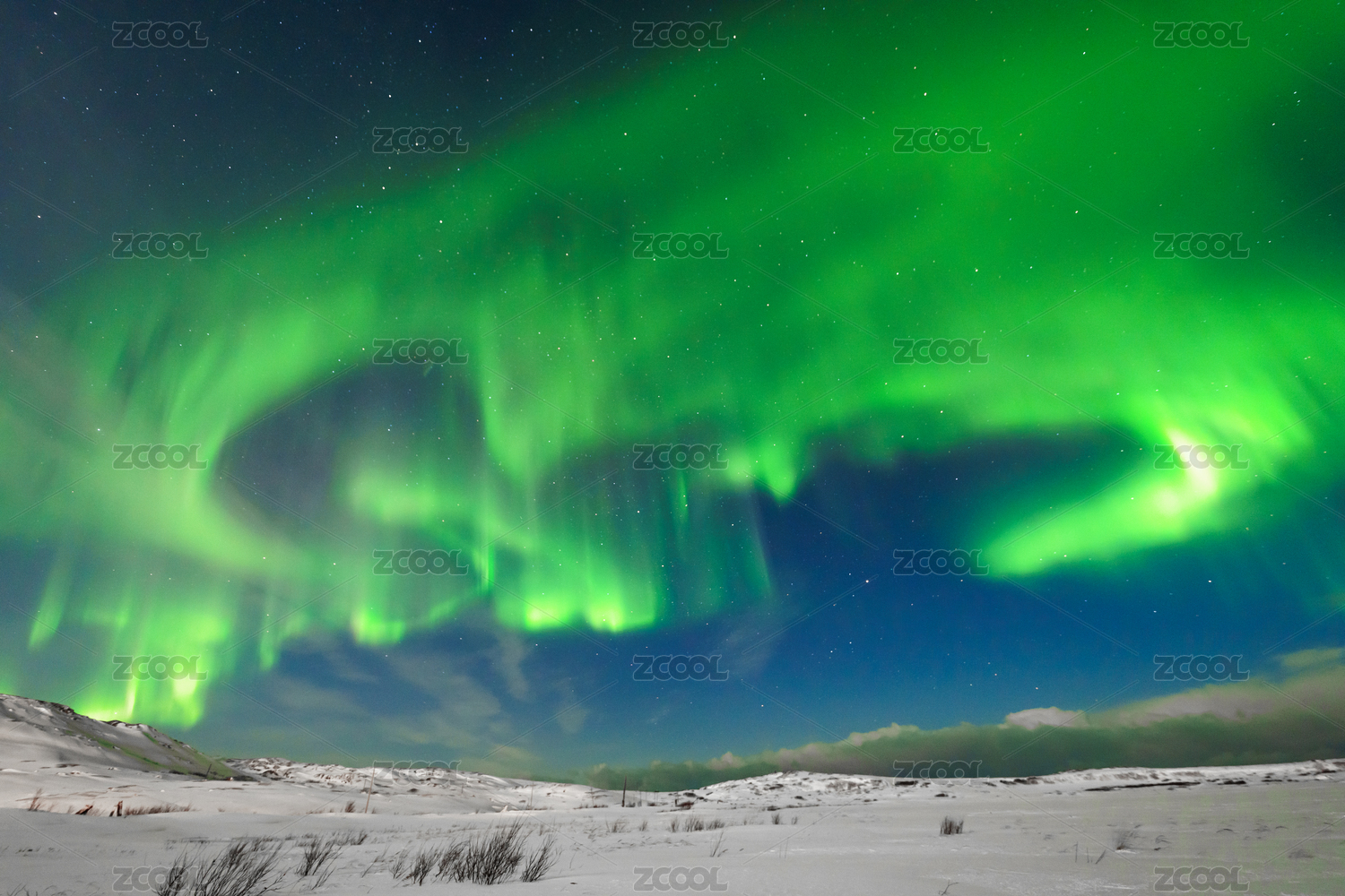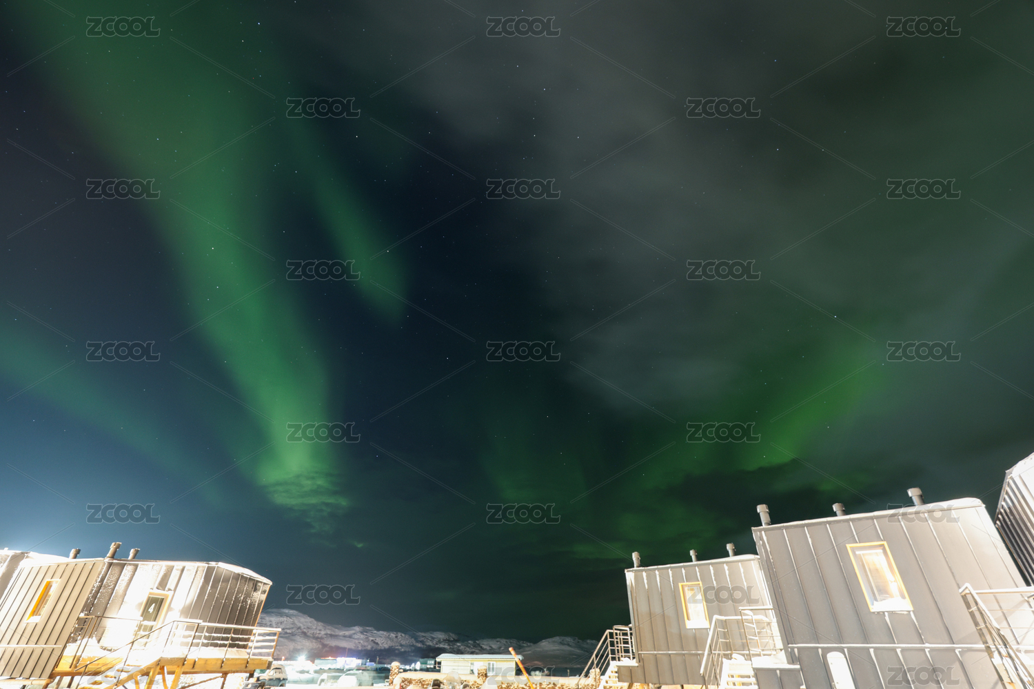 俄罗斯摩尔曼斯克小镇捷里别尔卡的北极光