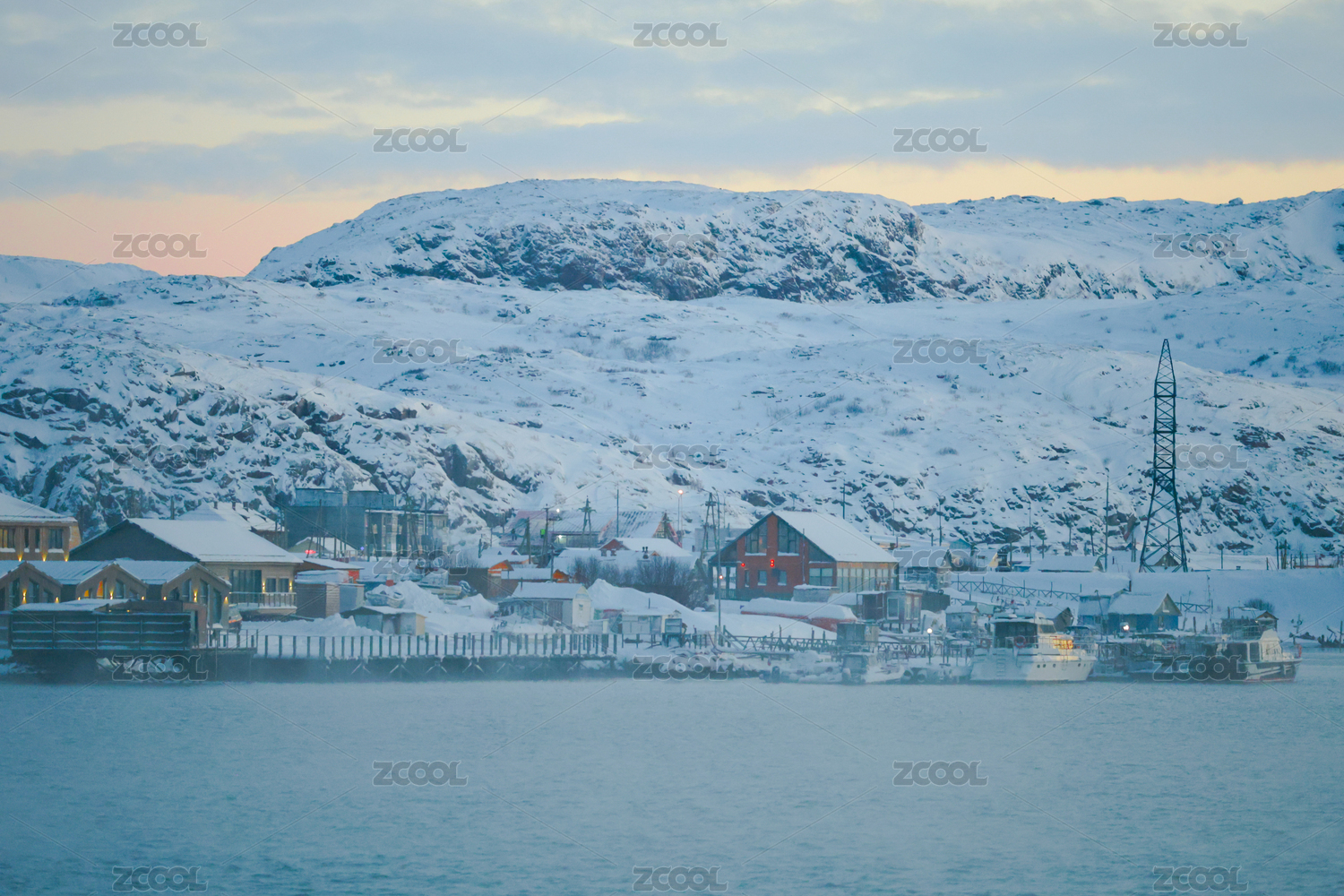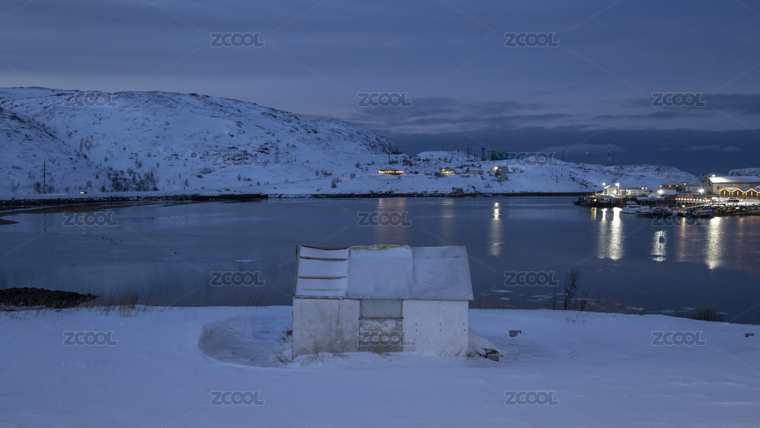 俄罗斯摩尔曼斯克捷里别尔卡雪夜风光