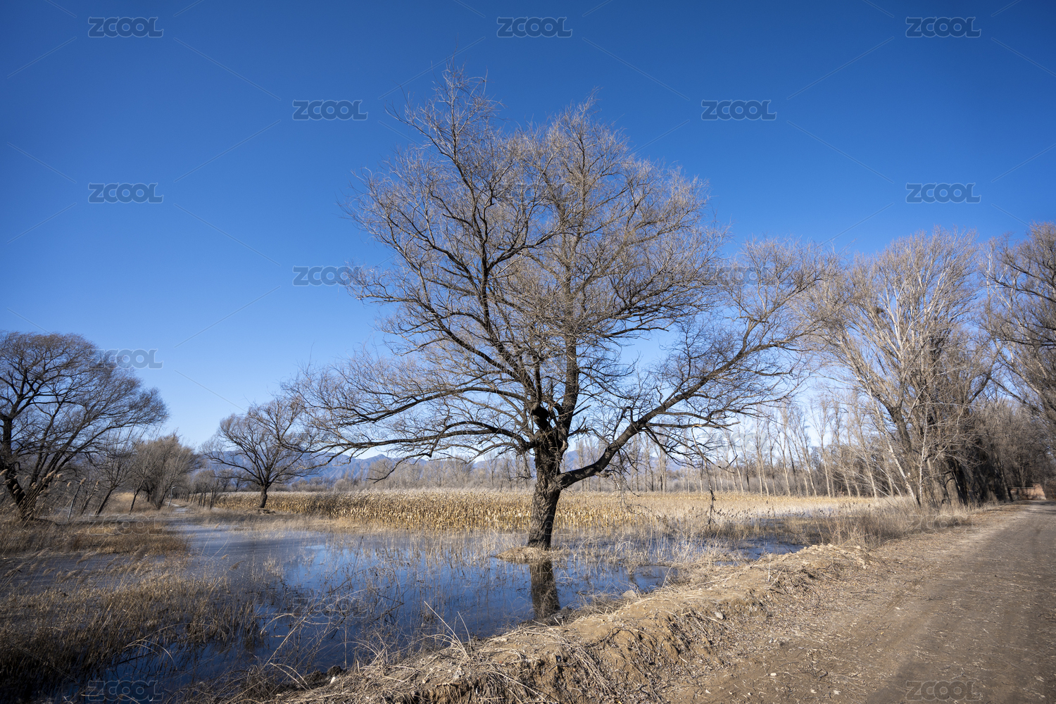内蒙古赤峰达里诺尔湖冬日雪地日落风光