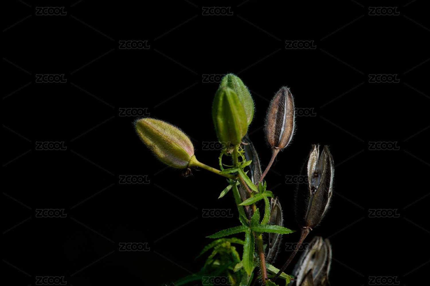 黄葵叶和果实特写