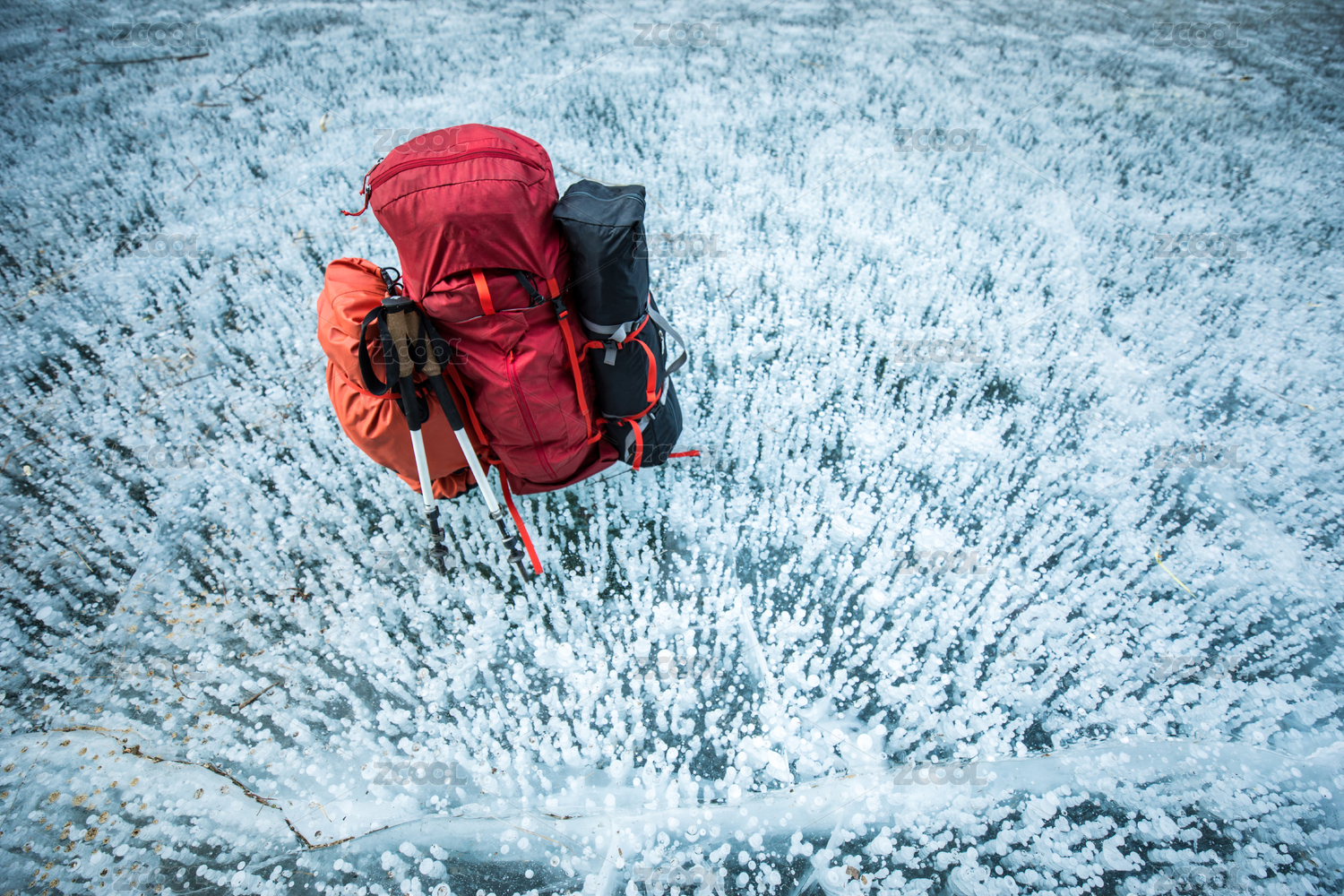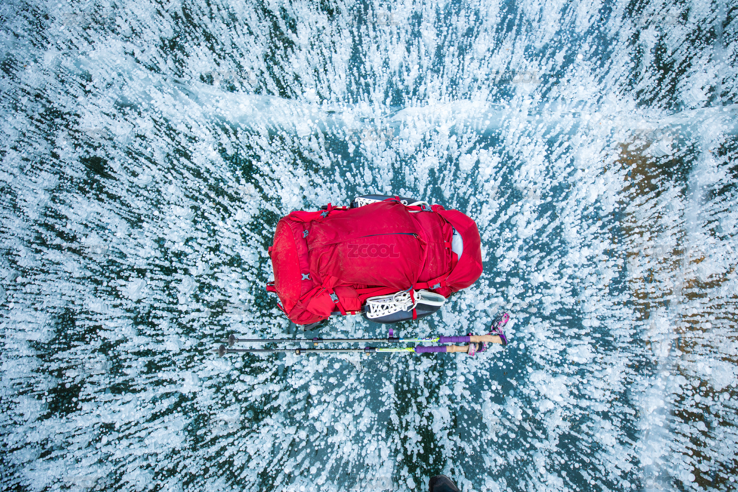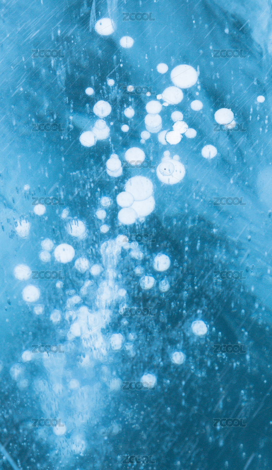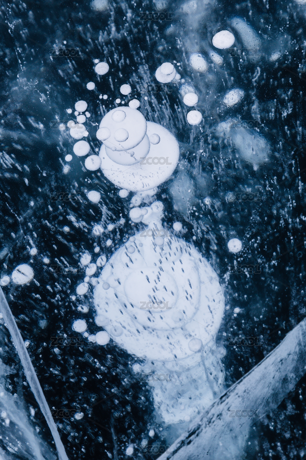 冬季 北京冰封湖面的冰裂纹理和气泡冰